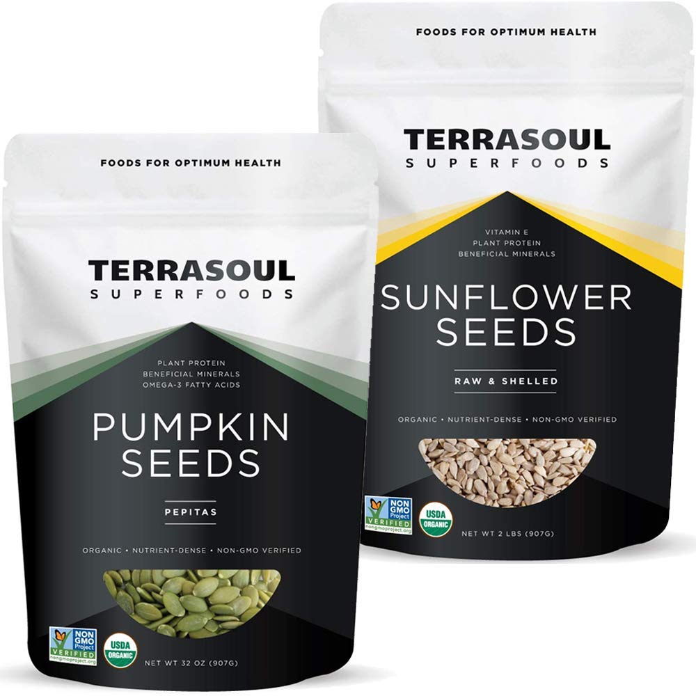 Terrasoul Superfoods Organic Pumpkin Seeds 2Lb + Organic Sunflower Seeds 2Lb Bundle