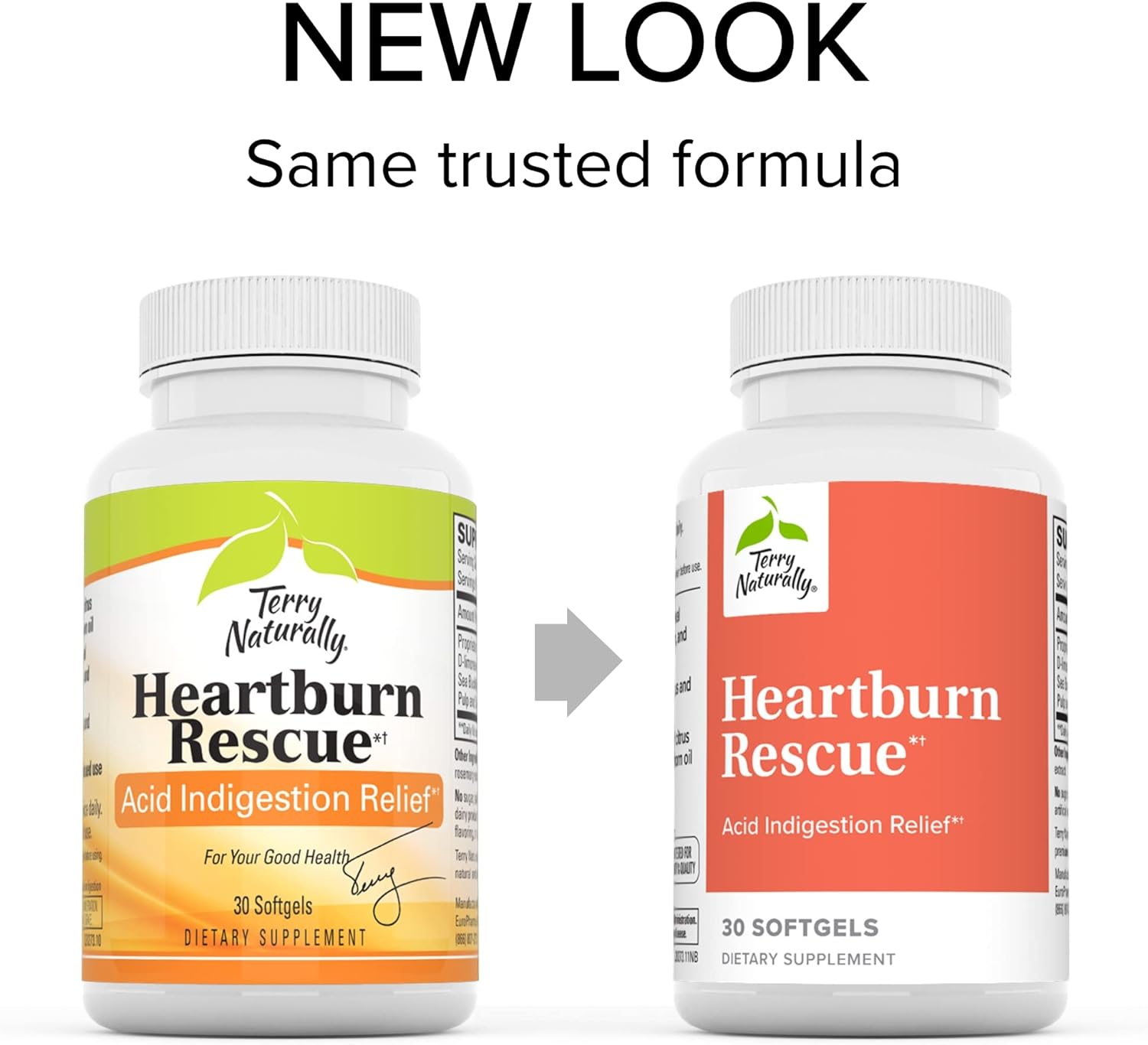 Terry Naturally Heartburn Rescue - 30 Softgels - Soothe Occasional Heartburn, Acid Indigestion & Upset Stomach - Non-Gmo, Gluten Free - 30 Servings