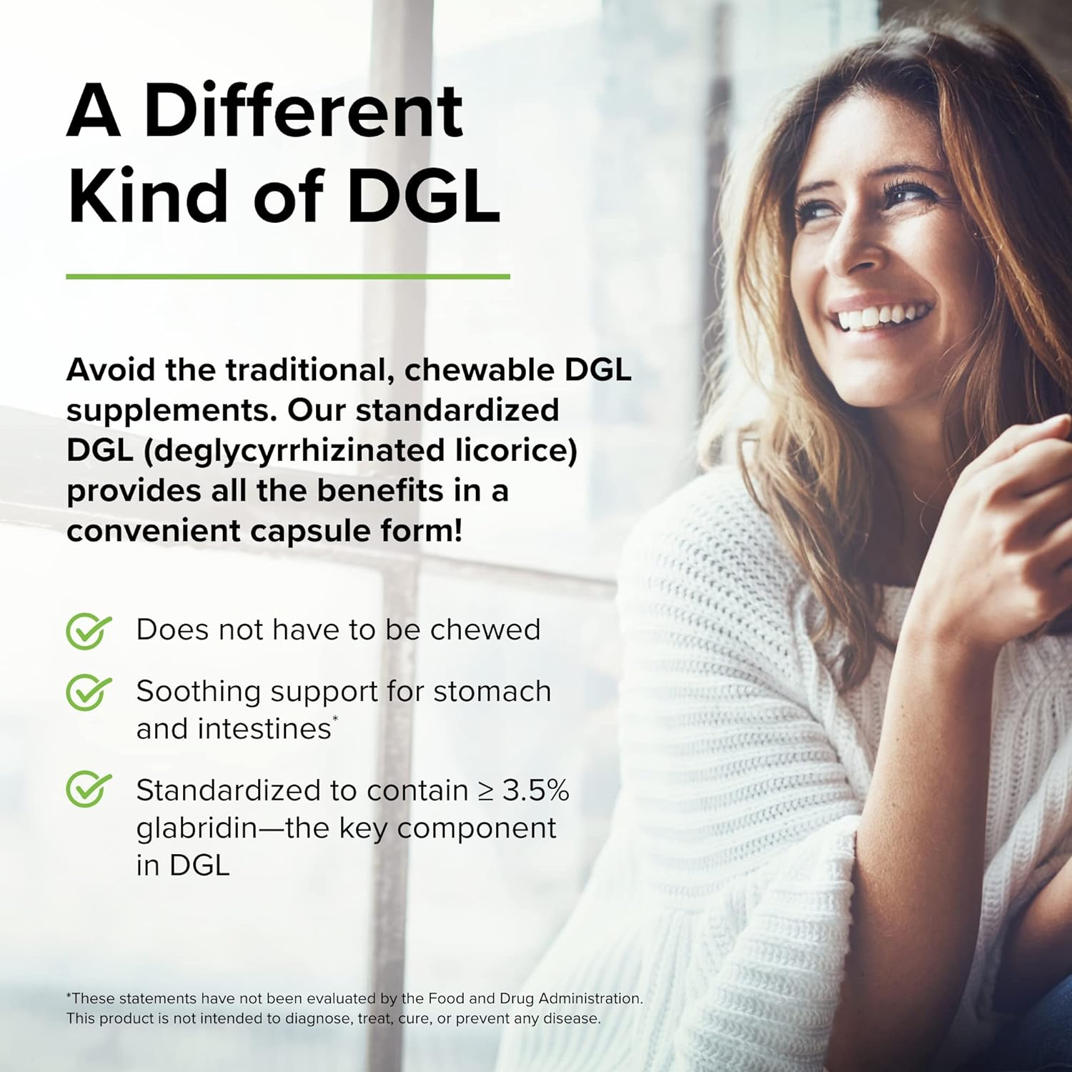A Different Kind of DGL; Avoid the traditional, chewable DGL supplements; Our clinically studied DGL (deglycyrrhizinated licorice) provides all the benefits in a capsule that doesn’t have to be chewed