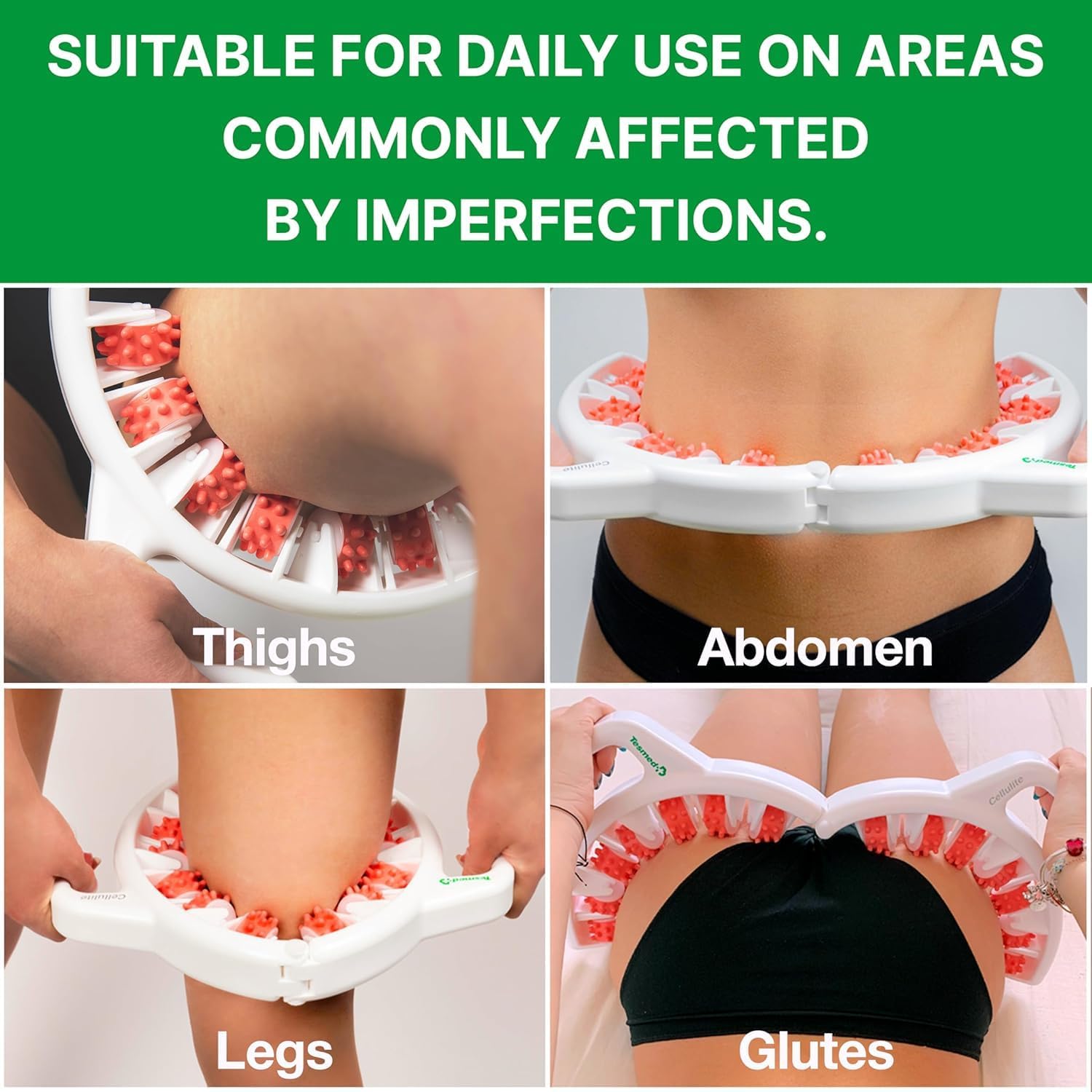 ? Quick & easy to use: Just 3 minutes per area per day are enough. Its ergonomic shape allows you to treat large areas quickly β ideal for the entire thigh (inner and outer), glutes, and abdomen. Adjustable width up to 15 inches (38 cm) for perfect adaptability