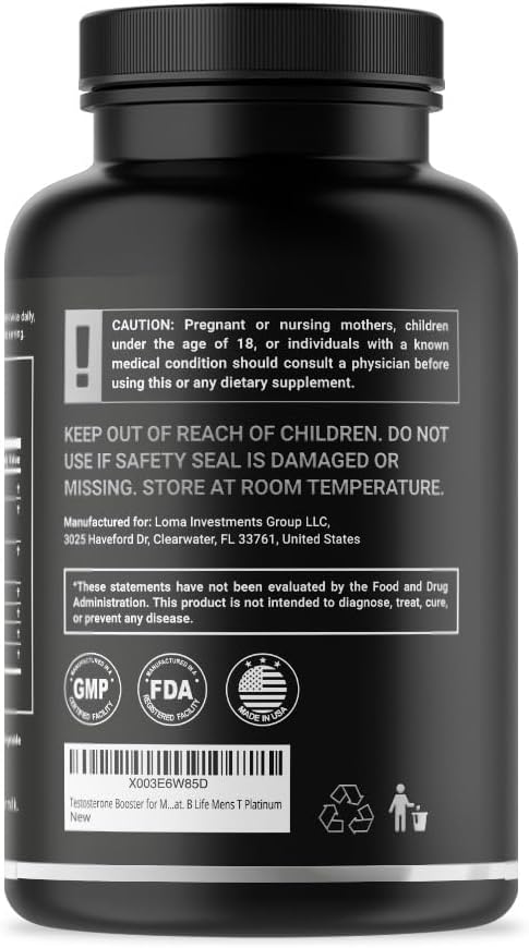 Testosterone Booster For Men | 240 Caps - 80 Days | Stamina, Endurance, Muscle Growth & Strength | Made In Usa By B Life
