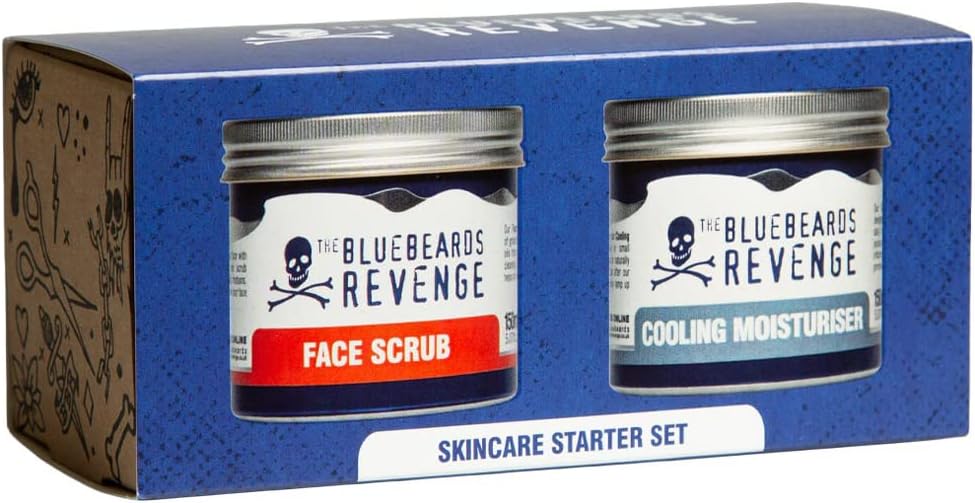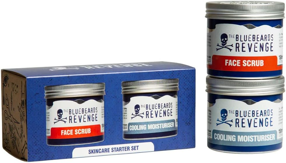 The Bluebeards Revenge Skincare Starter Set, Vegan Friendly Gift Set, Includes Face Scrub (150Ml) Cooling Moisturiser (150Ml) - 2 Piece