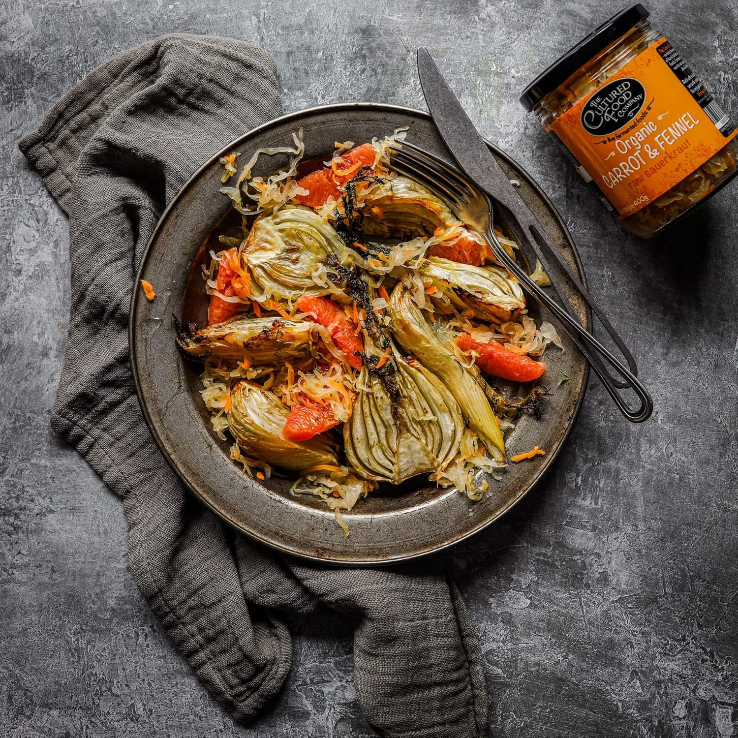 The Cultured Food Company - Organic Carrot & Fennel Sauerkraut 1Kg Jar - 100% Natural Ingredients- Raw & Unpasteurised - Probiotic Rich - Traditionally Fermented Cabbage- Handmade - No Preservatives