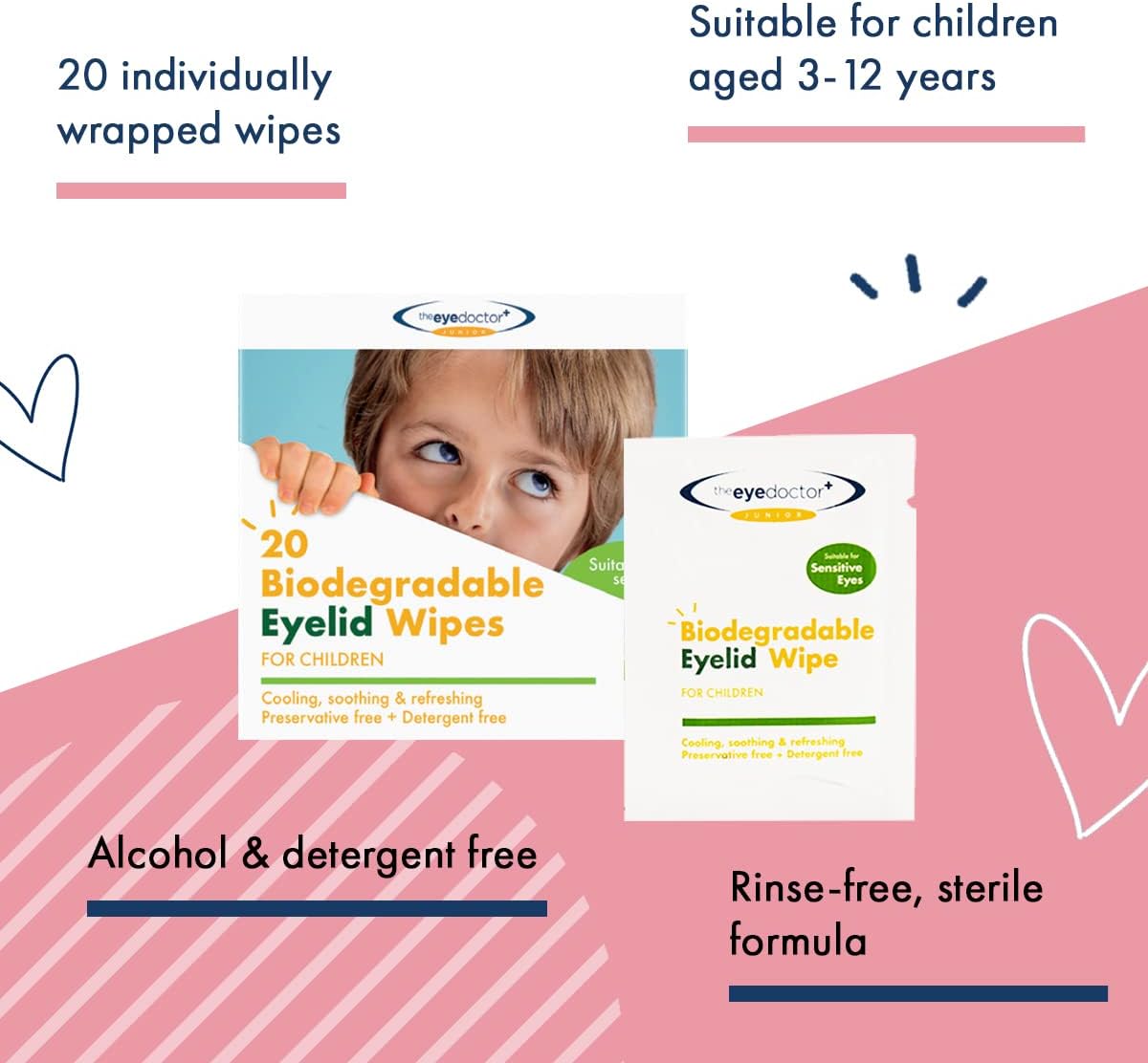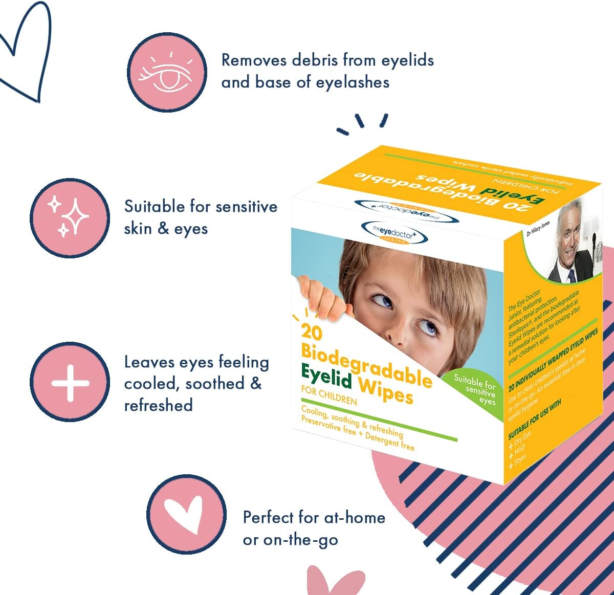 The Eye Doctor Junior Eyelid Wipes - 20X Individually Wrapped Kids Eye Lid Cleansing Wipes - Daily Hygiene & Dry Eye Relief - Suitable For Children'S Sensitive Eyes