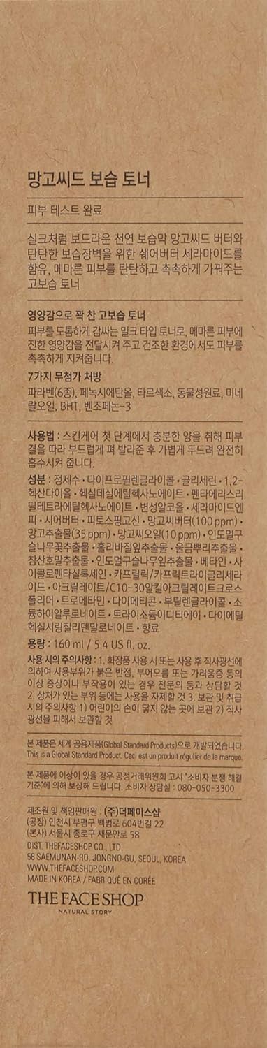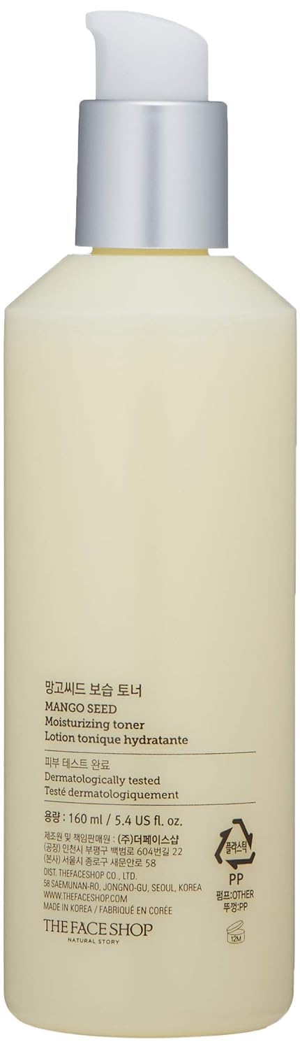 The Face Shop Mango Seed Moisturizing Toner | Intense Hydrating & Nourishing Toner With Subtly Sweet-Scented For Dry Skin | Rich & Everlasting Skin Moisturization, 5.4 Fl Oz