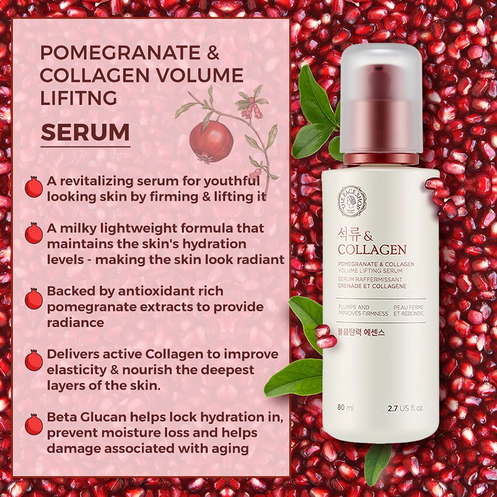 The Face Shop Pomegranate & Collagen Volume Lifting Serum - Helps Skin Look Firm & Supple - Reduces Fine Lines & Wrinkles - Improves Elasticity - Hydrating Lightweight Face Serum - Korean Skin Care