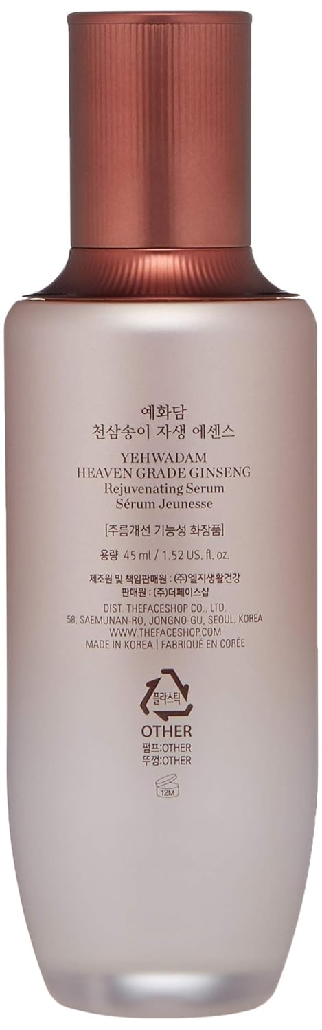 The Face Shop Yehwadam Heaven Grade Ginseng Rejuvenating Serum | Gentle & Low-Irritant Formula For Skin Firmness & Brightness | Naturally Derived For Eye Skin Brightness, 1.52 Fl Oz