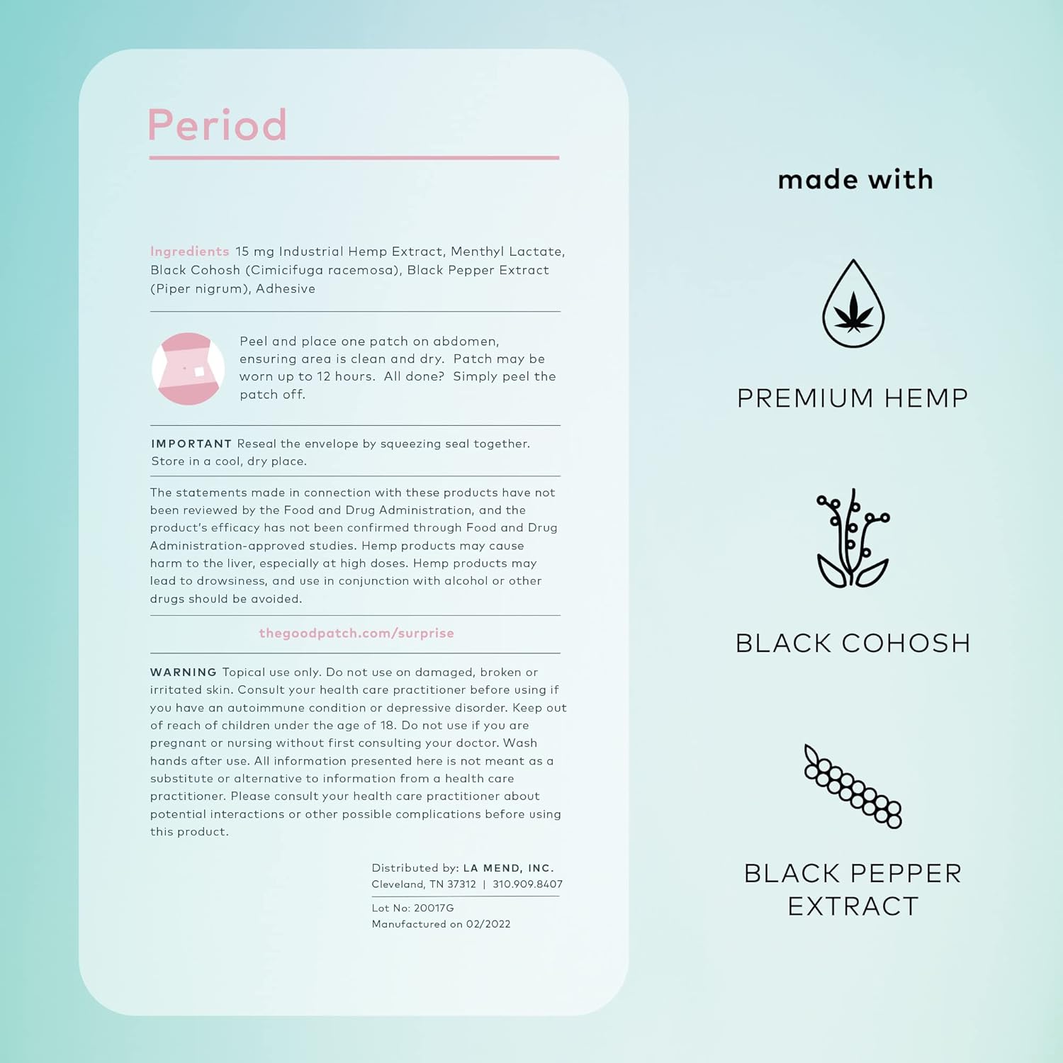 DESCRIPTION : The Good Patch Menstrual and Period Support - Sustained Release Plant Powered Period Patch with Hemp Extract, Black Cohosh and Black Pepper (8 Total Patches)4 Count (Pack of 2)