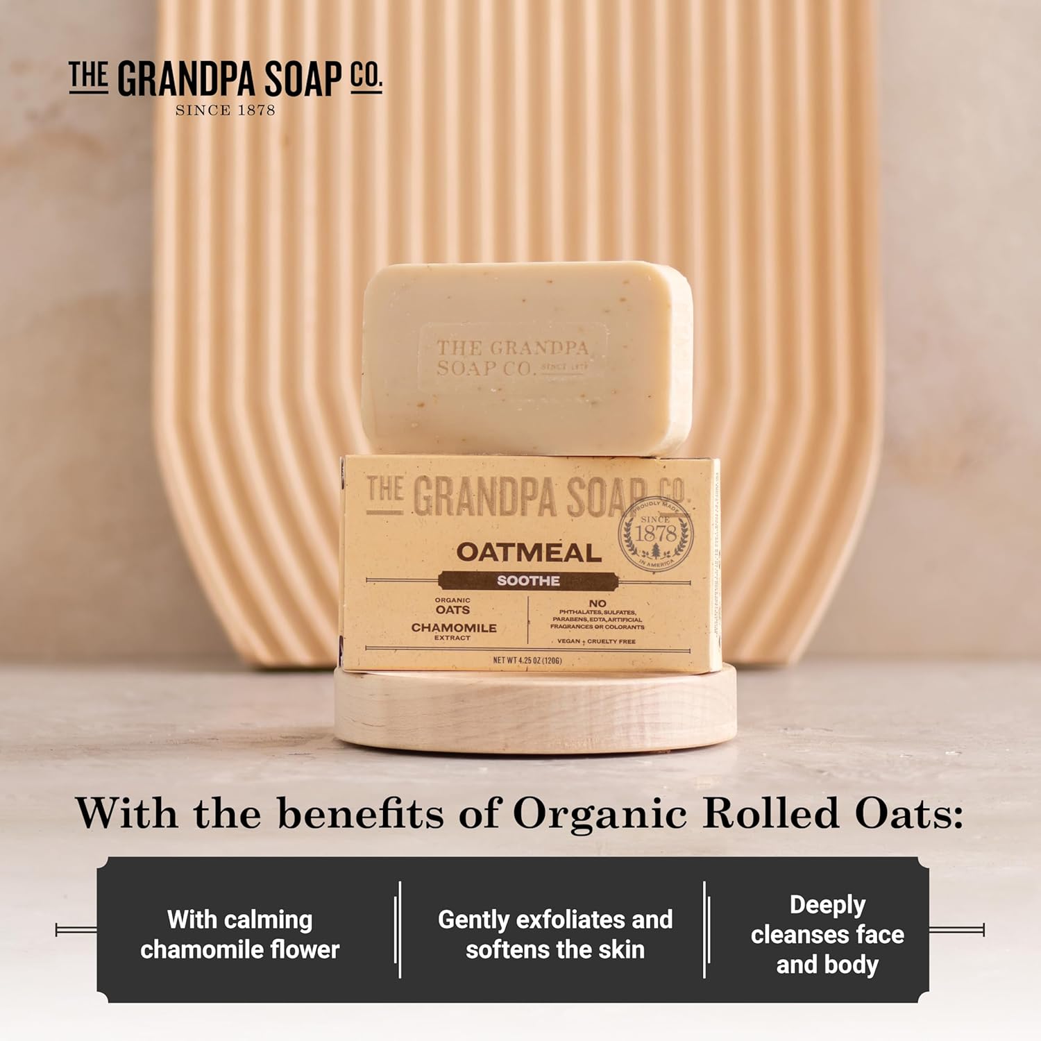 The Grandpa Soap Company Oatmeal Bar Soap - With Organic Oats + Chamomile Extract, Gently Exfoliates And Softens The Skin, Vegan, 4.25 Oz, 3 Pack