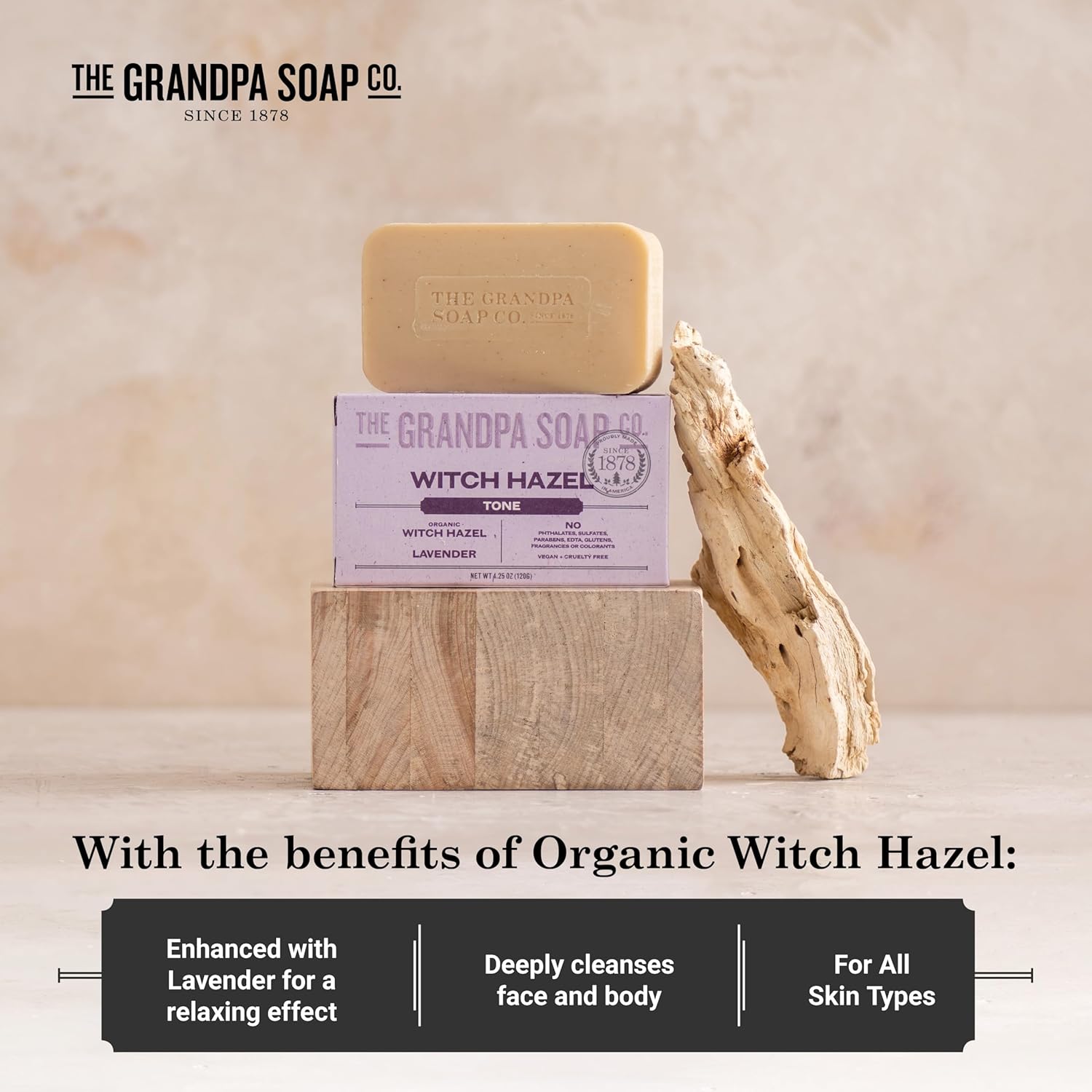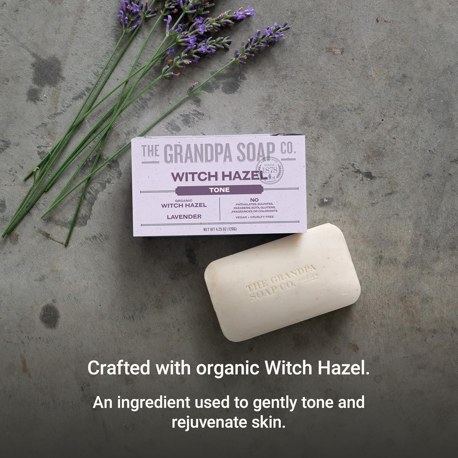 The Grandpa Soap Company Witch Hazel Bar Soap - Gently Tones Skin, With Witch Hazel And Lavender, Provides A Relaxing Effect, Vegan, For Face And Body, 4.25 Oz, 4 Pack