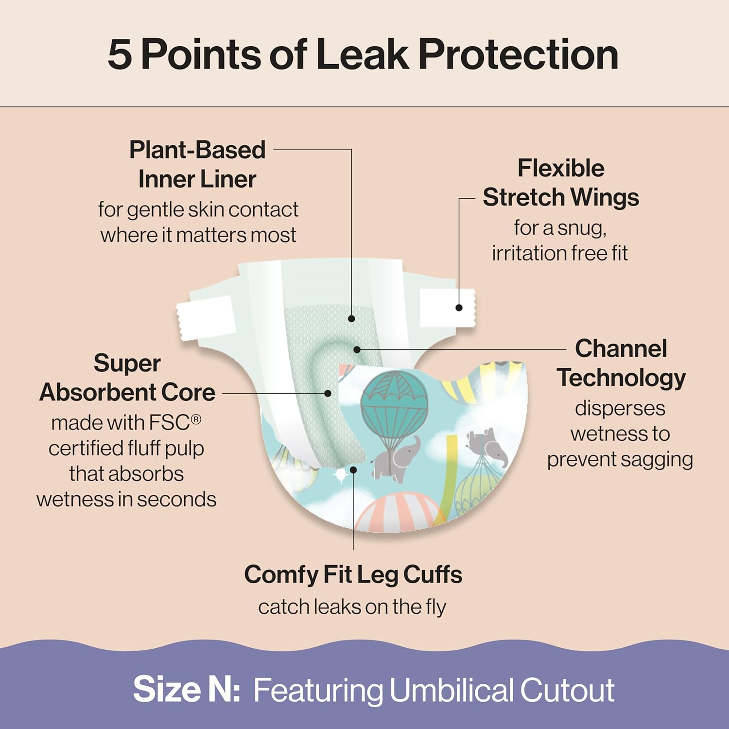 Designed to protect delicate skin, Honest Clean Conscious Diapers keep baby comfortable and dry through all the wiggles and wobbles! Our softest diaper yet delivers up to 100% leak protection with Comfort Dry Technology. The hypoallergenic, plant based inner liner, flexible stretch wings, super absorbent core, and channel technology provide a comfy, secure fit for all ages and stages. Because safety is top priority, these diapers are OEKO-TEX STANDARD 100 Certified, a 3rd party that tests for 350 harmful chemicals, and made with FSC Certified Fluff Pulp and other controlled materials. And for cuteness overload, each diaper features a super cute print!,UP TO 100% LEAK PROTECTION: Clean Conscious Diapers with Comfort Dry Technology and a wetness indicator offer 5 points of advanced leak protection. A super absorbent core absorbs wetness in seconds and channel technology disperses to prevent sagging,HYPOALLERGENIC: Our softest diaper yet is hypoallergenic, fragrance free, and made with a plant based inner liner for gentle skin contact where it matters the most. Made with soft and safe materials to protect baby’s delicate skin,OUR BEST FIT YET: Designed to move with your baby, Honest Clean Conscious Diapers feature comfy fit leg cuffs to catch leaks on the fly and flexible, stretchy wings that provide a snug, irritation-free fit. The super cute prints are an added bonus,AGES and STAGES: From umbilical cutouts to protect healing bellies (NB–1) to double poo pockets for extra backup (1–2) and super stretchy sides for active babies (3–7), each size offers unique features designed to grow with your baby,MADE WITHOUT: Elemental chlorine, parabens, fragrances, and natural rubber latex. Because safety is a top priority, our diapers are tested for 350 harmful chemicals, are OEKO-TEX STANDARD 100 certified, and are made with FSC Certified fluff pulp
