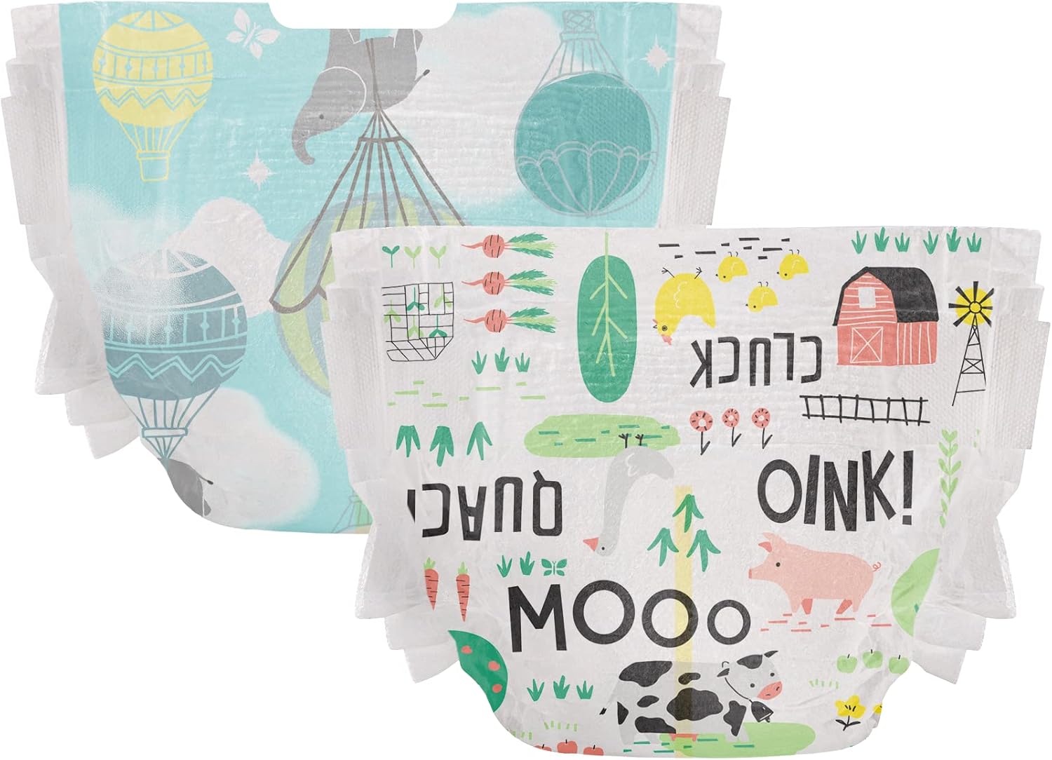 The Honest Company Clean Conscious Diapers | Plant-Based, Sustainable | Above It All + Barnyard Babies | Super Club Box, Size 1 (8-14 Lbs), 160 Count