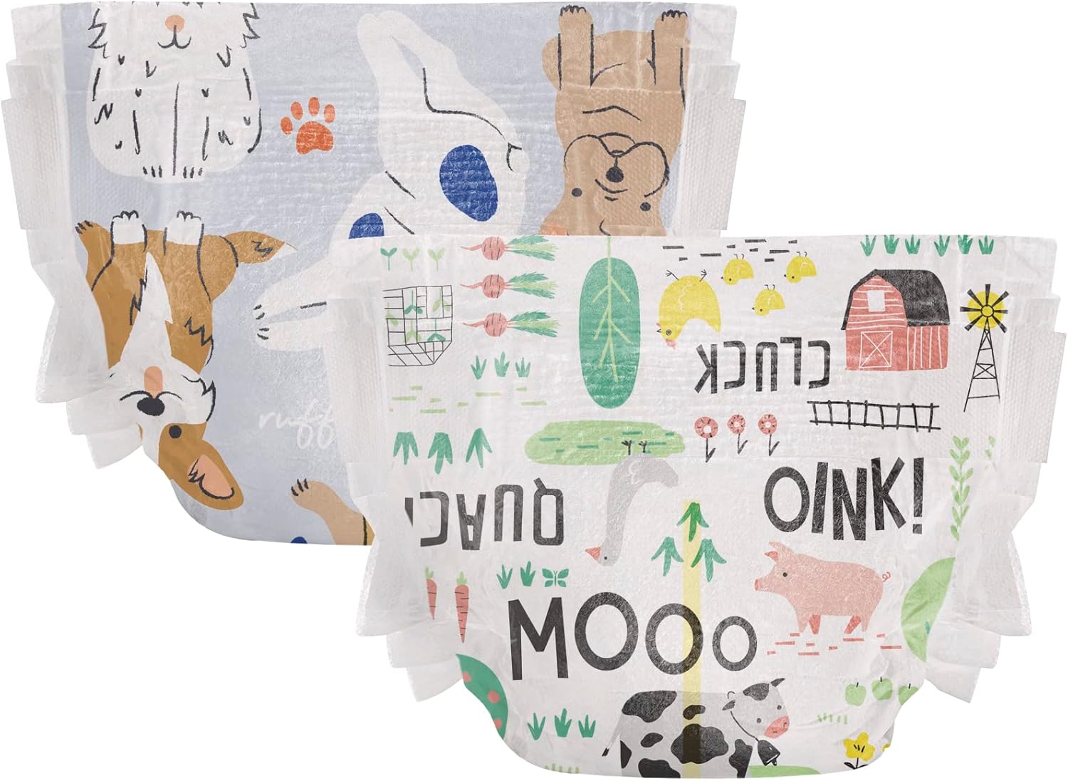 The Honest Company Clean Conscious Diapers | Plant-Based, Sustainable | Barnyard Babies + It’S A Pawty | Club Box, Size 7 (41+ Lbs), 32 Count
