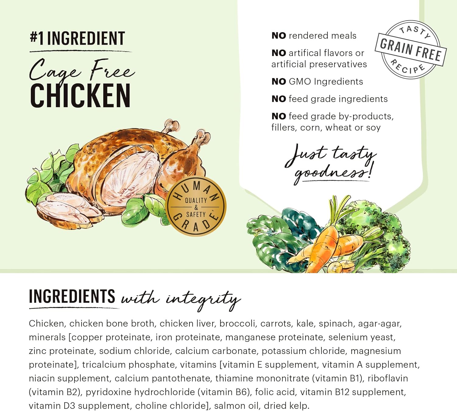 We Believe That Health Starts With Human Grade, Whole Foods. We Teamed Up With A Chef To Make This Smooth, Hearty Pâté With Cage Free Chicken And Included Super Greens Like Kale And Spinach. It'S A Complete Meal Or Healthy Mix In That Helps You Boost Your Pup'S Health And Happiness From The Inside Out. The Honest Difference Most Pet Food Makers Would Never Invite You Inside Their Kitchens—Because They’Re Not Kitchens. They’Re Heavy Processing Plants. Our Company Started In Our Founder'S Kitchen In 2002, Where She Made Meals For Her Family (Both Human And Pets). Today, We Still Prepare Food With The Same Love And Uncompromising Quality. Our Food Is Made From Ingredients You’D Recognize In Your Own Kitchen Right Alongside Breakfast Cereals And Bakery Mixes, So It Satisfies The Same Rigorous Safety, Cleanliness And Quality Standards Of People Food. If We Wouldn’T Put It On Our Own Dinner Table, We Won’T Feed It To Your Pet. Ingredients With Integrity From Eggs And Salmon To Pumpkin And Parsley, Wholesome Foods You Recognize And Can Pronounce Are The Only Ingredients We Use. And What We Leave Out Is As Important As What We Put In. Our Food Is Made In The Usa And Never Contains The Potentially Unsafe And Unhealthy Ingredients Found In Feed-Grade Products. - No By-Products Or Fillers - No Additives Or Preservatives - No “4D” Meats Or Feathers - No Corn, Wheat Or Soy - No Ingredients From China - No Gmo Ingredients Our Suppliers Must Certify They Meet The Strictest Standards For Food Safety And Health As Well As Sustainability And Fair-Trade Practices. Every Year, Each Of Our Suppliers Signs Our “Human Food Grade Guarantee” And “Statement Of Quality And Integrity.” It’S Not Easy To Become One Of Our Supplies — And For Good Reason. Madehonest™ Less Processed Process - Made In Our Kitchen – We Start By Mixing 100% Human Grade Batches Of Fresh Meat And Produce. - Cold Pressed – Then We Cold Press These Whole Foods Into Pure And Delicious Whole Food Clusters. - Slow Roasted And Dehydrated – Each Cluster Is Slow Roasted And Gently Dehydrated For Maximum Nutrients. Why Human Grade For Veterinarians, Food Safety Experts And Savvy Pet Owners, There’S 100% Human Grade, And There’S Everything Else. It’S The Best Pet Food You Can Buy, Ensuring A Level Of Quality And Safety No Feed-Grade Product Can Claim. We Use Only The Highest Quality Ingredients From Sources We Trust (And No Phony, Feed Grade Ingredients Ever). Our Preparation Methods And Facilities Meet Safety Standards 7X Those Of Feed-Grade Ones. We Do More Than Meet The Highest Standard For Food Safety And Quality — We Invented It. A Few Other Pet Food Brands Have Since Followed Our Lead, But Most Continue To Use Inferior, Feed-Grade Ingredients. Once You Learn The Difference, You’Ll Never Go Back To Feed Grade Again
