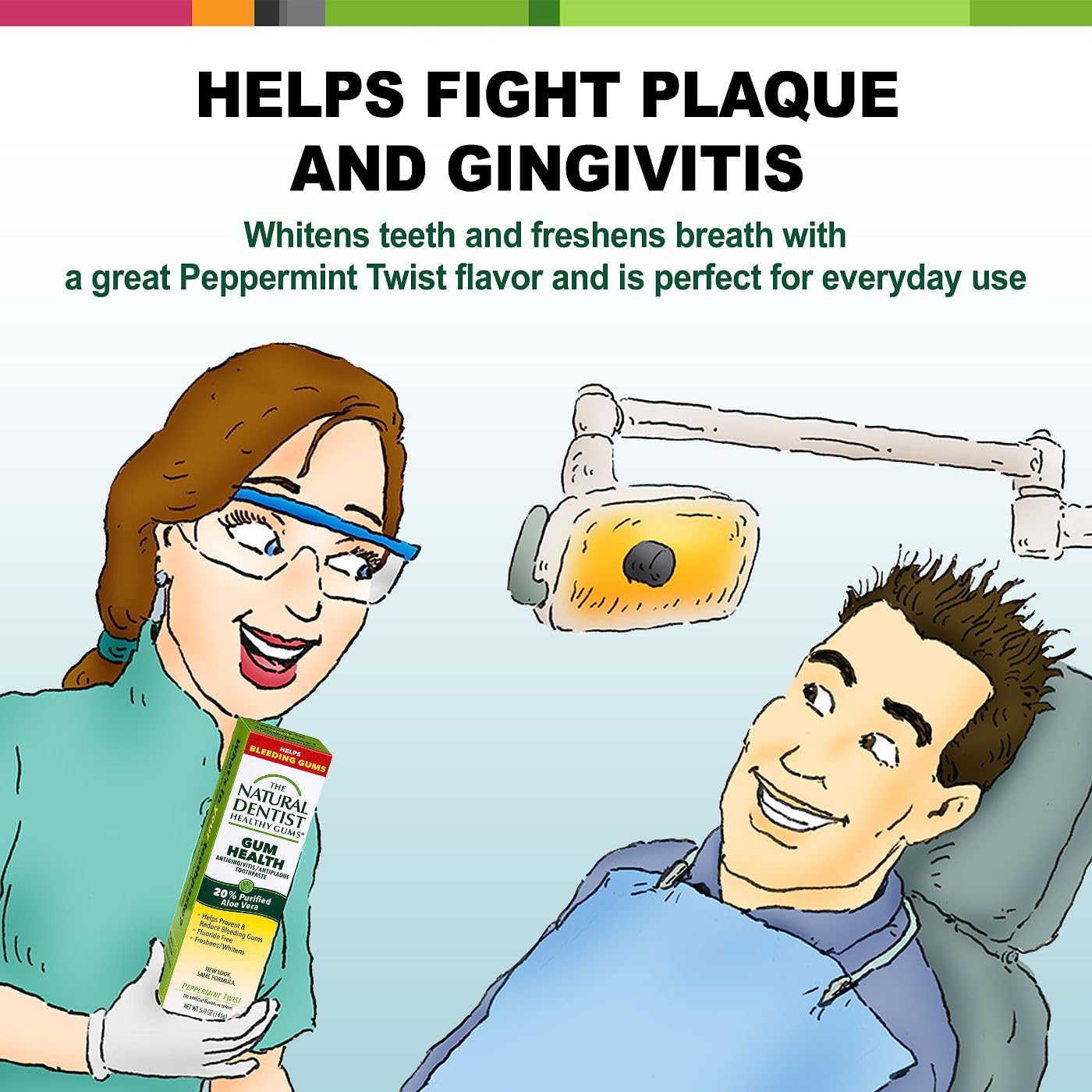 The Natural Dentist Gum Health Toothpaste, 20% Purified Aloe Vera Formula, Fluoride-Free, Peppermint Twist Flavor, Supports Healthy Gums, Prevents Gingivitis, Removes Plaque, Whitens Teeth, 5Oz Tube