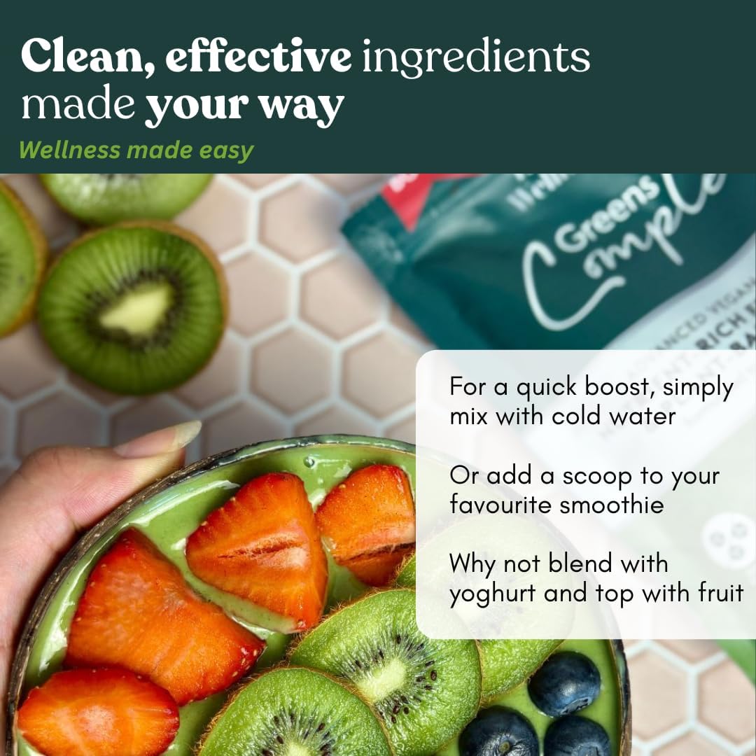The Vegan Wellness Co. Greens Complex Berry Boost Powder, 2 X 180G Pouches Advanced Greens, Fruits And Superfood Blend For Overall Wellness