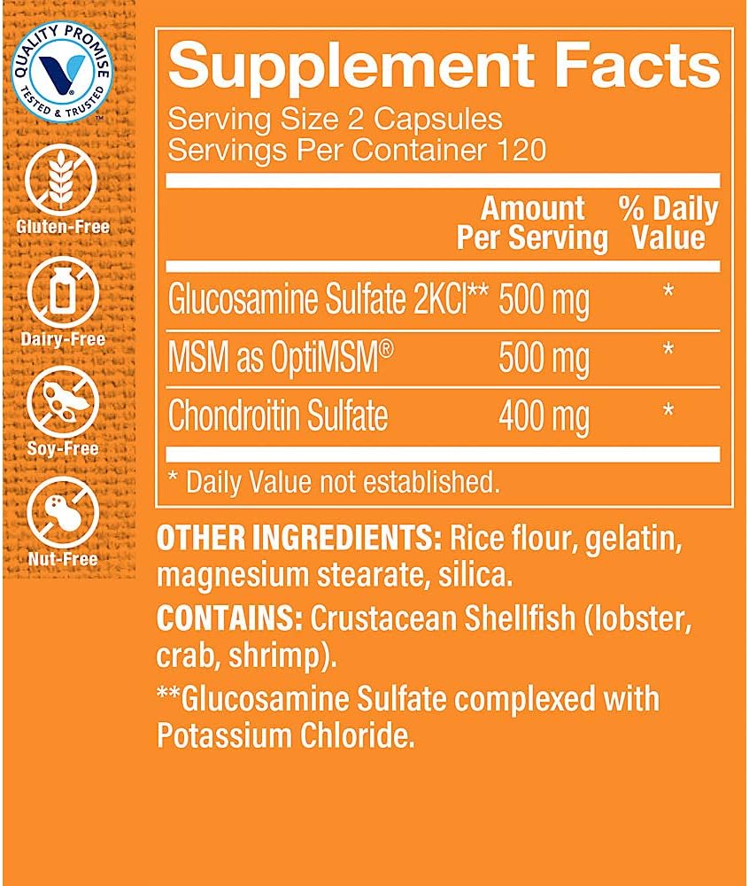 5 > 500mg Glucosamine Sulfate, 400mg Chondroitin Sulfate, 500mg MSM