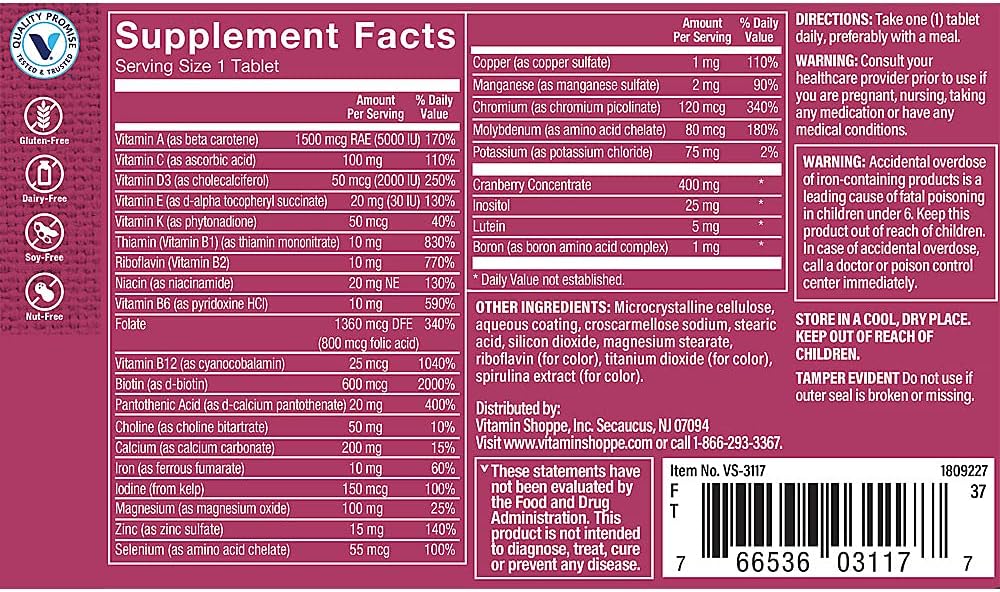 DESCRIPTION : The Vitamin Shoppe One Daily Women's Multivitamin (60 Tablets)