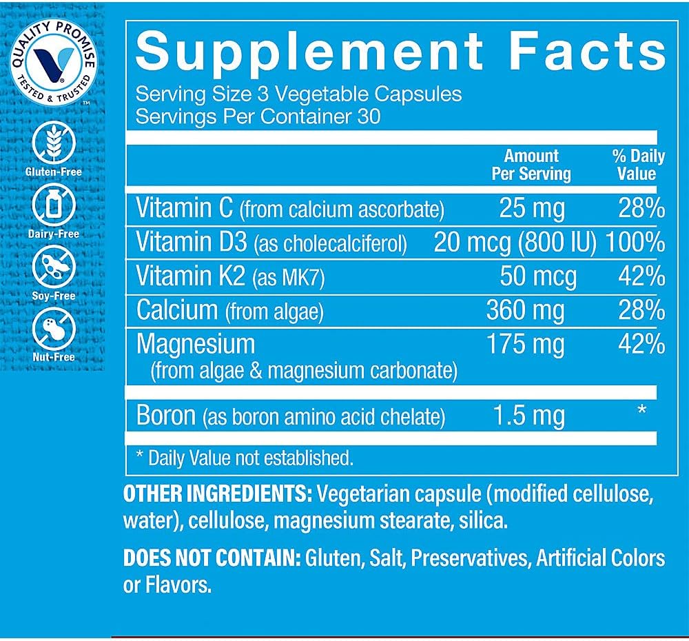 DESCRIPTION : The Vitamin Shoppe Plant-Based Algae Calcium Bone Formula with Magnesium, D3, K2 for Bone Support (90 Veggie Capsules)