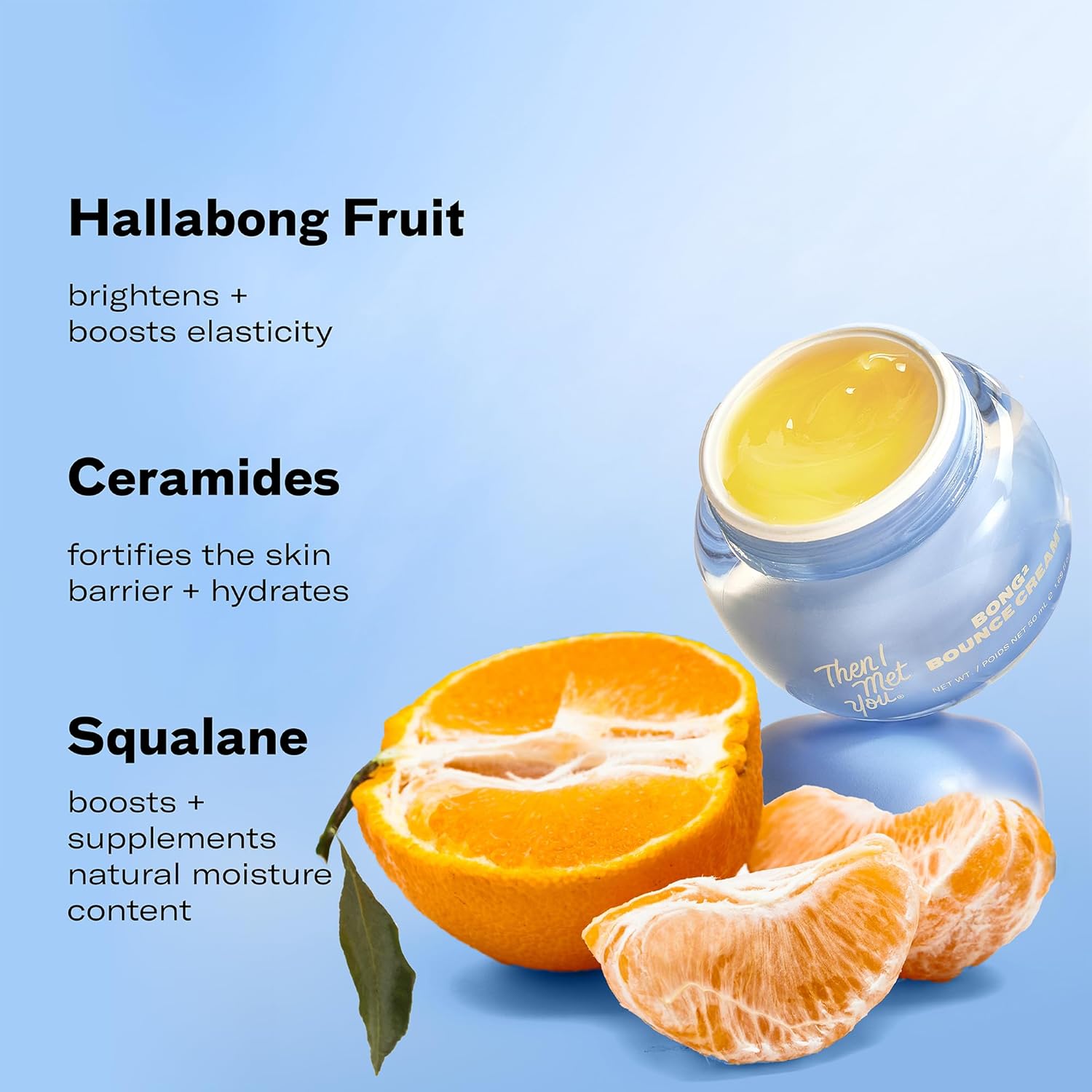 Then I Met You Bong² Bounce Cream, Lightweight Gel Cream Barrier Moisturizer With Hallabong Extract, Omega-3 Fatty Acids, Squalane, And Ceramides, Cruelty-Free, Hydration For Oily Skin, 1.69 Fl Oz