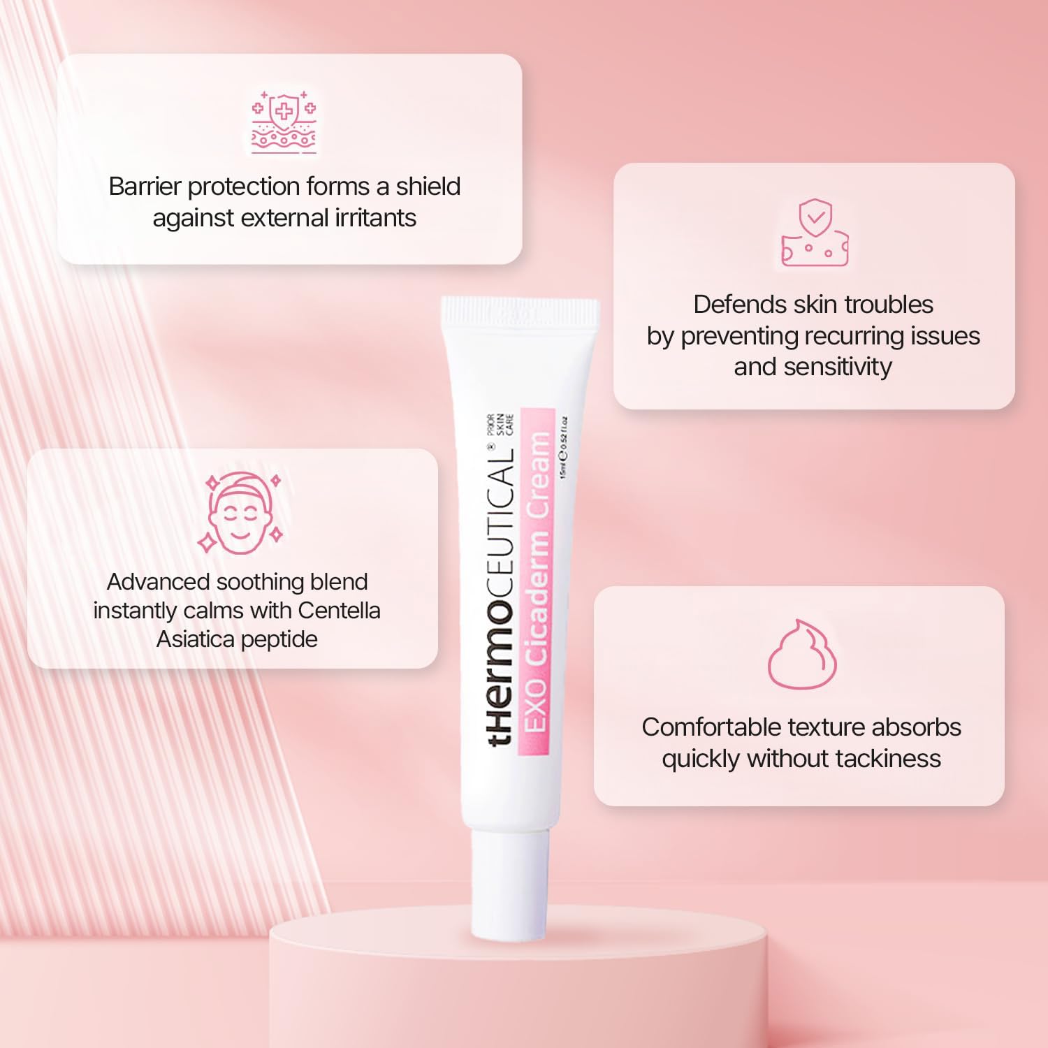 Thermoceutical Exo Cicaderm Cream - Topical Application Forms, Repair Cream, Protective Barrier, Skin Defense, Advanced Calming Formula, Comfortable Texture, 0.52 Fl.Oz