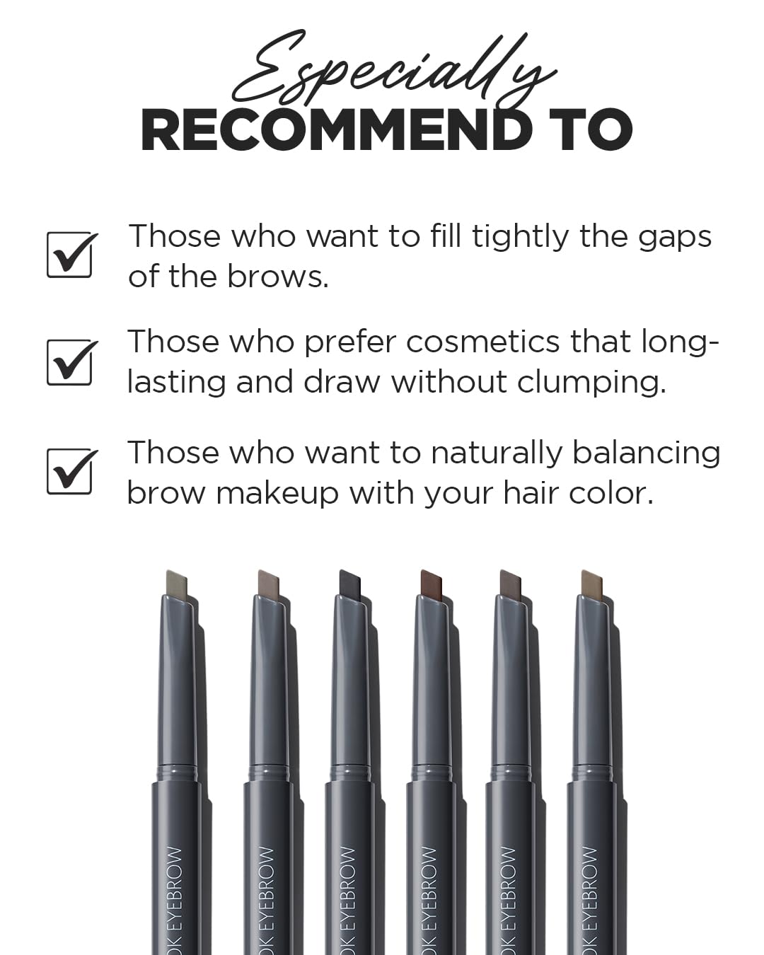 HIGHLY PIGMENTED WATERPROOF LINER: The SAEM makeup brow pencil comes in 6 natural colors to match hair and pupil colors. Our Brown, Deep Brown, Gray Brown, Black Gray, Natural Brown, and Ash Brown brow liner delivers up to 24-hour wear that is smudge-proof, waterproof and does not clump