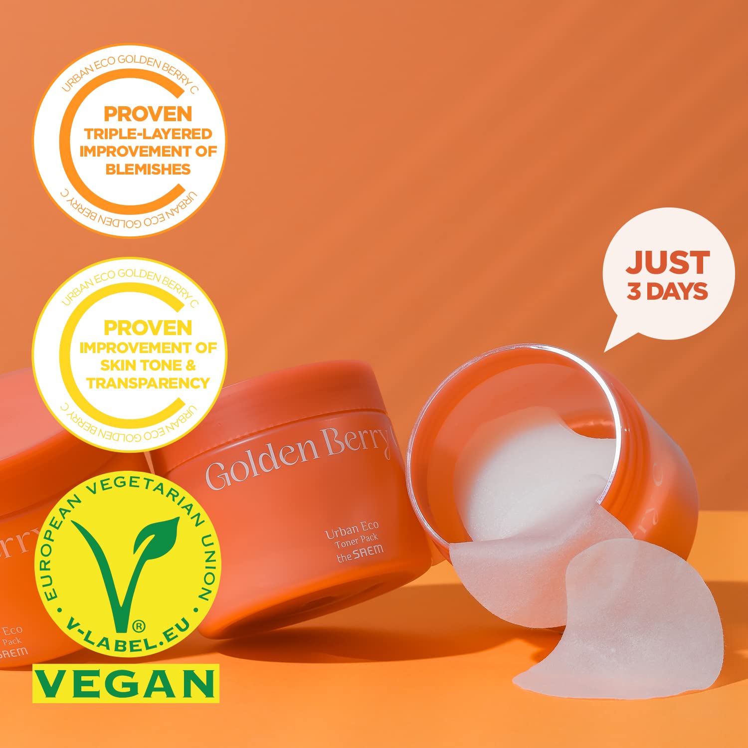 THESAEM Urban Eco Golden Berry C Toner Pack - Toner Pads for Face with Peruvian Golden Berry Extract - Skin Resurfacing Pads for Blemish, Tone Correction & Hydrating Freckles Remover, 50 Sheets : Beauty & Personal Care