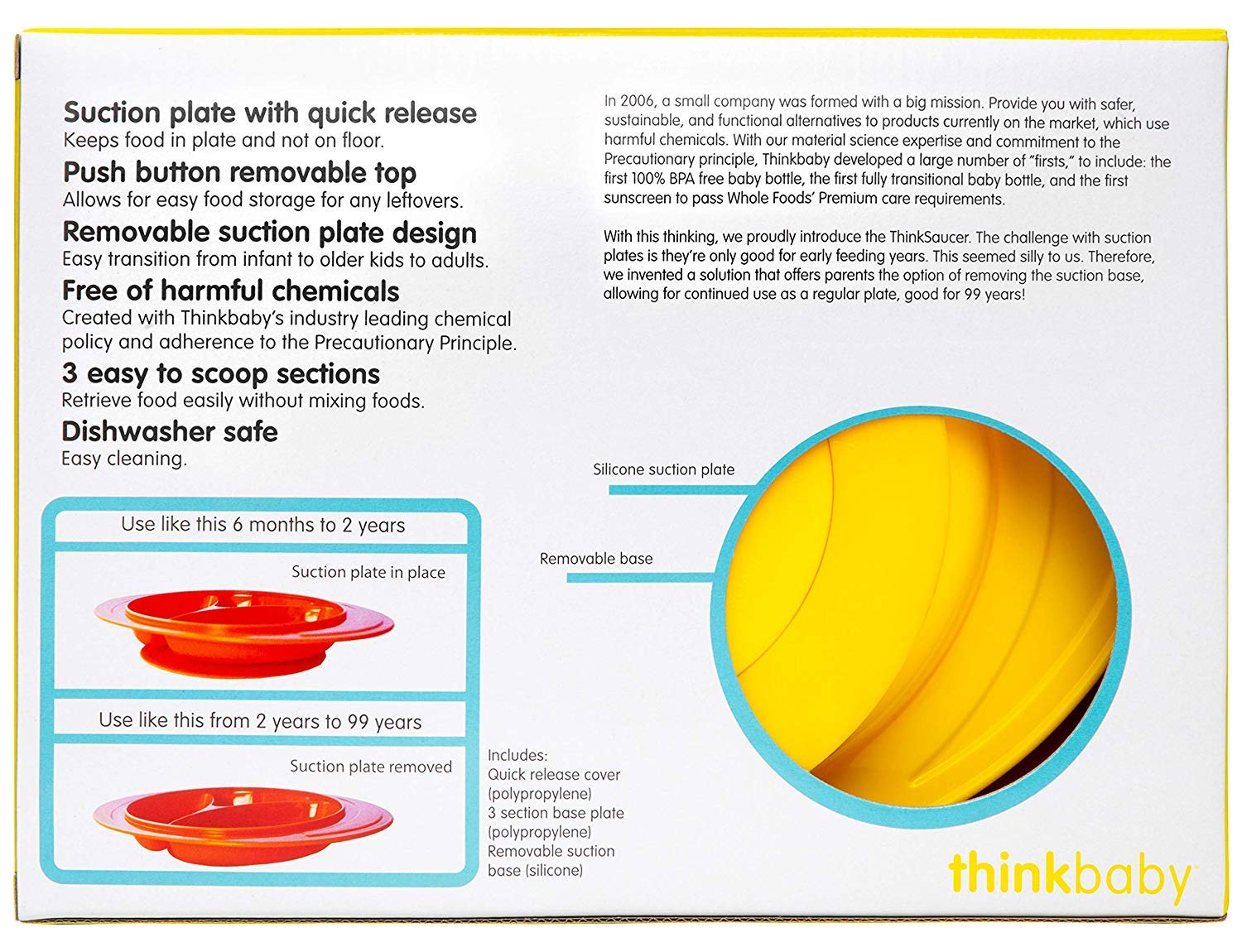 The Thinkbaby Thinksaucer Is Made Of Polypropylene For Safety And Easy Cleaning, And Is Free From Harmful Chemicals Like Bpa, Phthalates, Melamine, And Pet. The Silicone Suction Bottom Keeps The Saucer Stuck To The Surface It Is Placed On, But Can Also Be Removed Once Your Little One Begins To Grow. Removable Top Makes It Easy To Store Food As Leftovers, Or Travel With Snacks. It Is Dishwasher-Safe, And We Recommend Placing The Bowl In The Top Rack