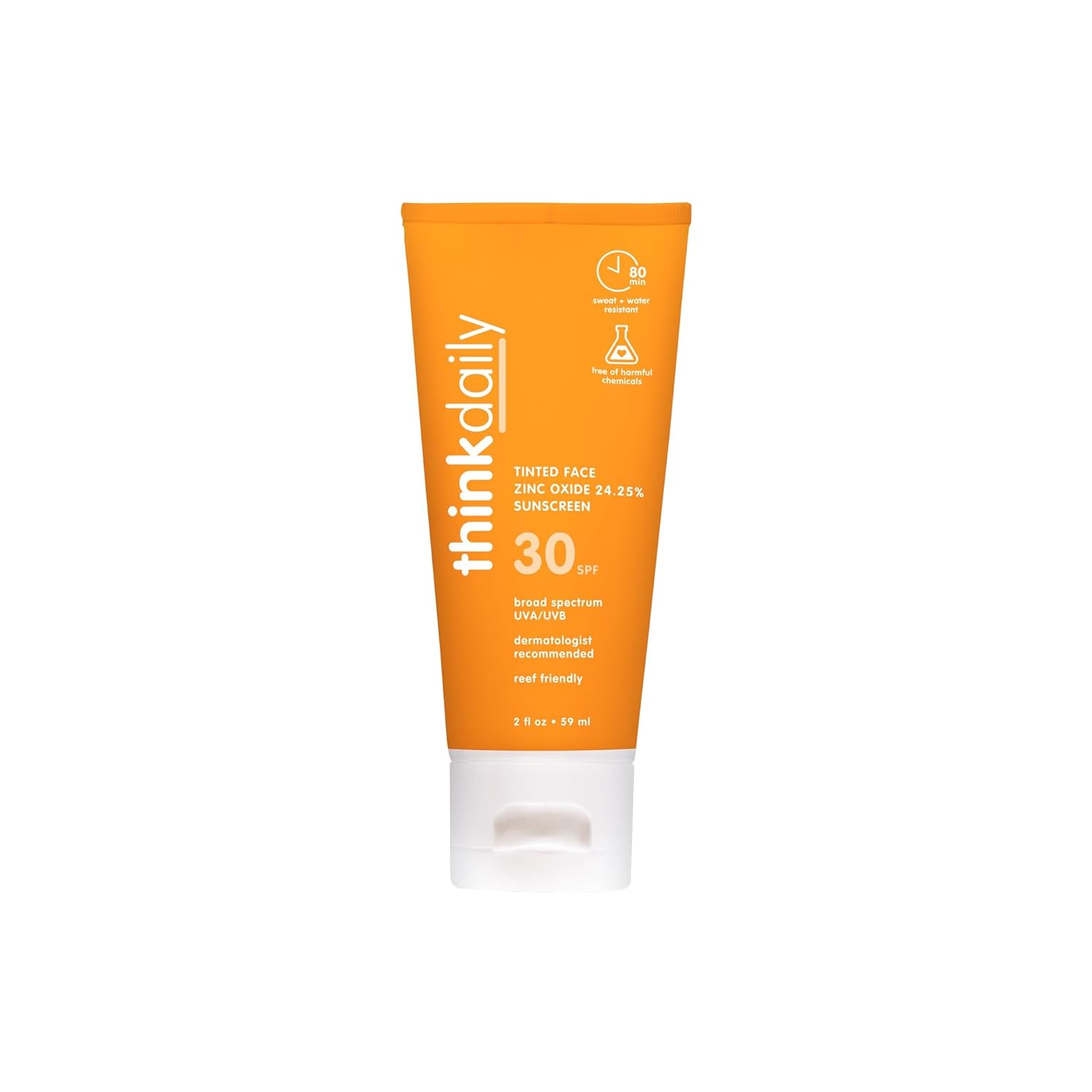ThinkDaily Tinted Face Sunscreen SPF 30 with 24.25% Zinc Oxide – Safe, Natural Facial Sun Cream for All Skin Tones - Water Resistant UVA/UVB Sun Protection – Vegan, Reef Friendly Sun Lotion, 2oz