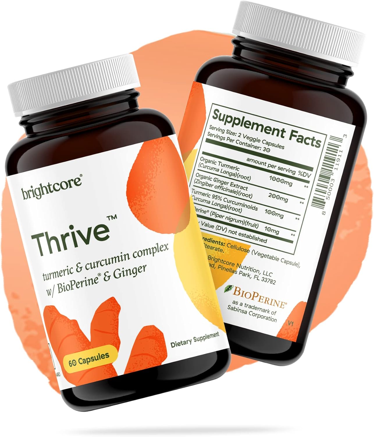 About this item Balance of curcumin, BioPerine, turmeric and ginger. With Patented Black Pepper Extract: BioPerine Enhance your focus with Thrive. Potent curcumin supplement. They’re non-GMO, dairy-free, gluten-free, soy-free, and have no artificial binders, fillers, or colors. › See more product details,Balance of curcumin, BioPerine, turmeric and ginger,With Patented Black Pepper Extract: BioPerine,Enhance your focus with Thrive,Potent curcumin supplement,They’re non-GMO, dairy-free, gluten-free, soy-free, and have no artificial binders, fillers, or colors