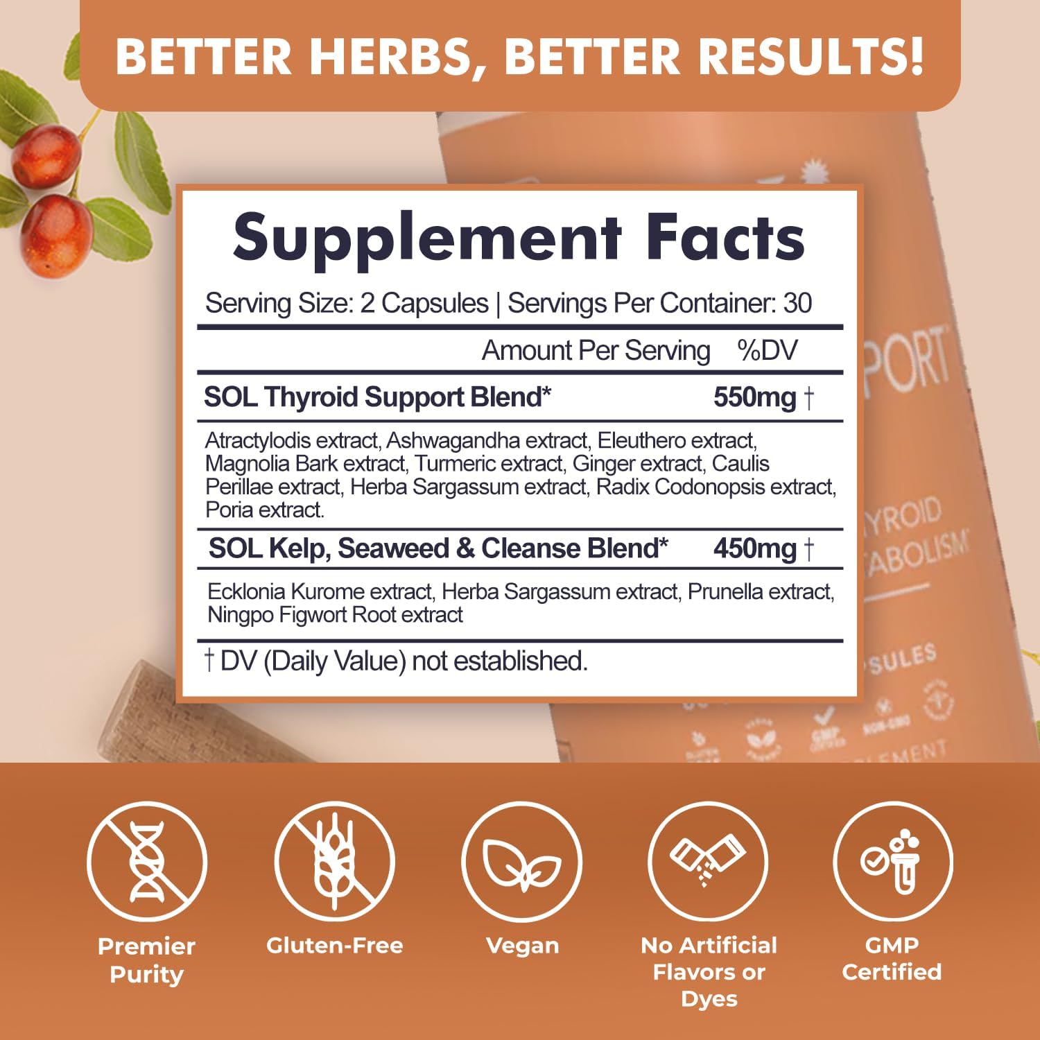Supports Healthy Thyroid And Metabolic Function - Sol Nutrition Thyroid Support Boosts Your Metabolism And Enhances Blood Circulation Supplying Vital Nutrients To Your Glands. A Blend Of Vitamins, Minerals, And Herbal Extracts Designed To Support Optimal Thyroid Health