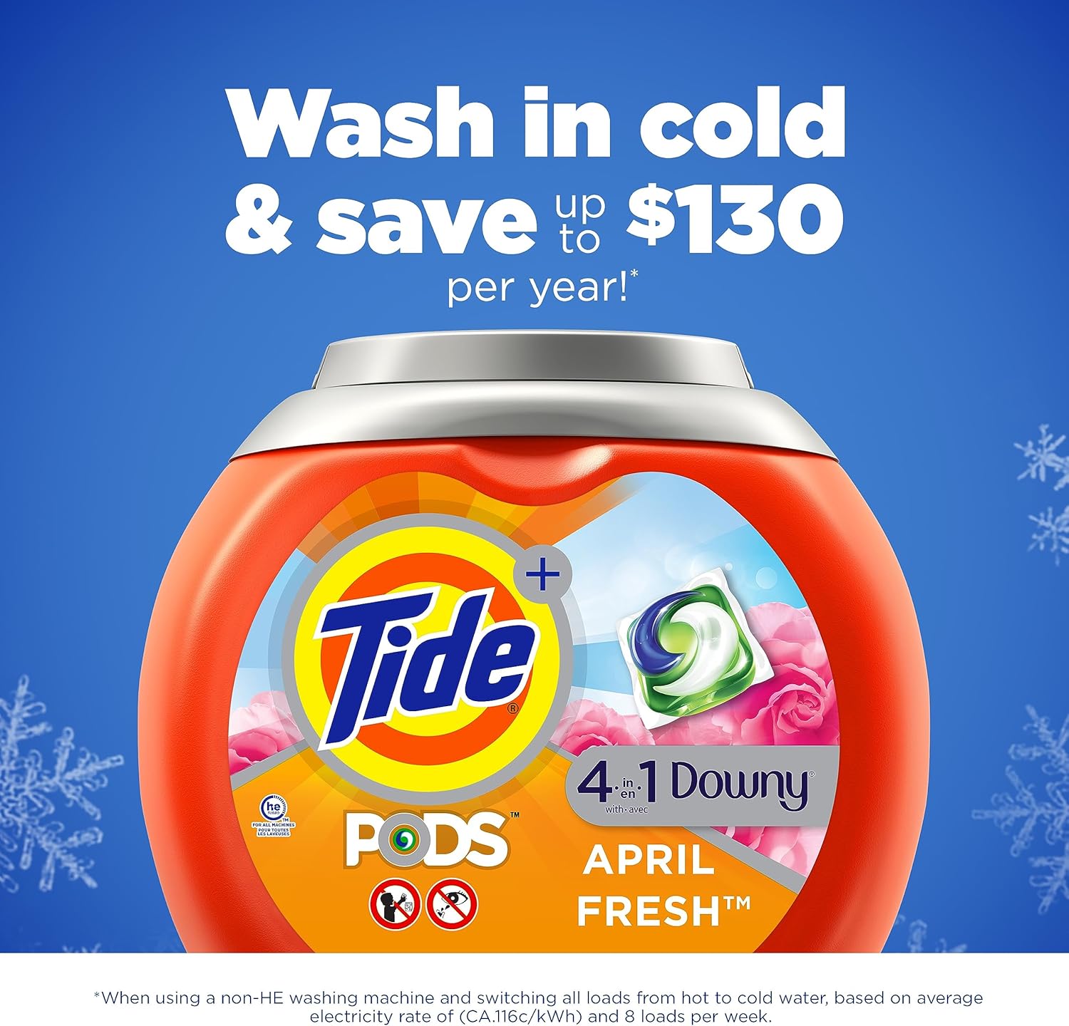 Tide Pods Plus Downy 4 In 1 He Turbo Laundry Detergent Soap Pods, April Fresh Scent, 61 Count Tub - Packaging May Vary