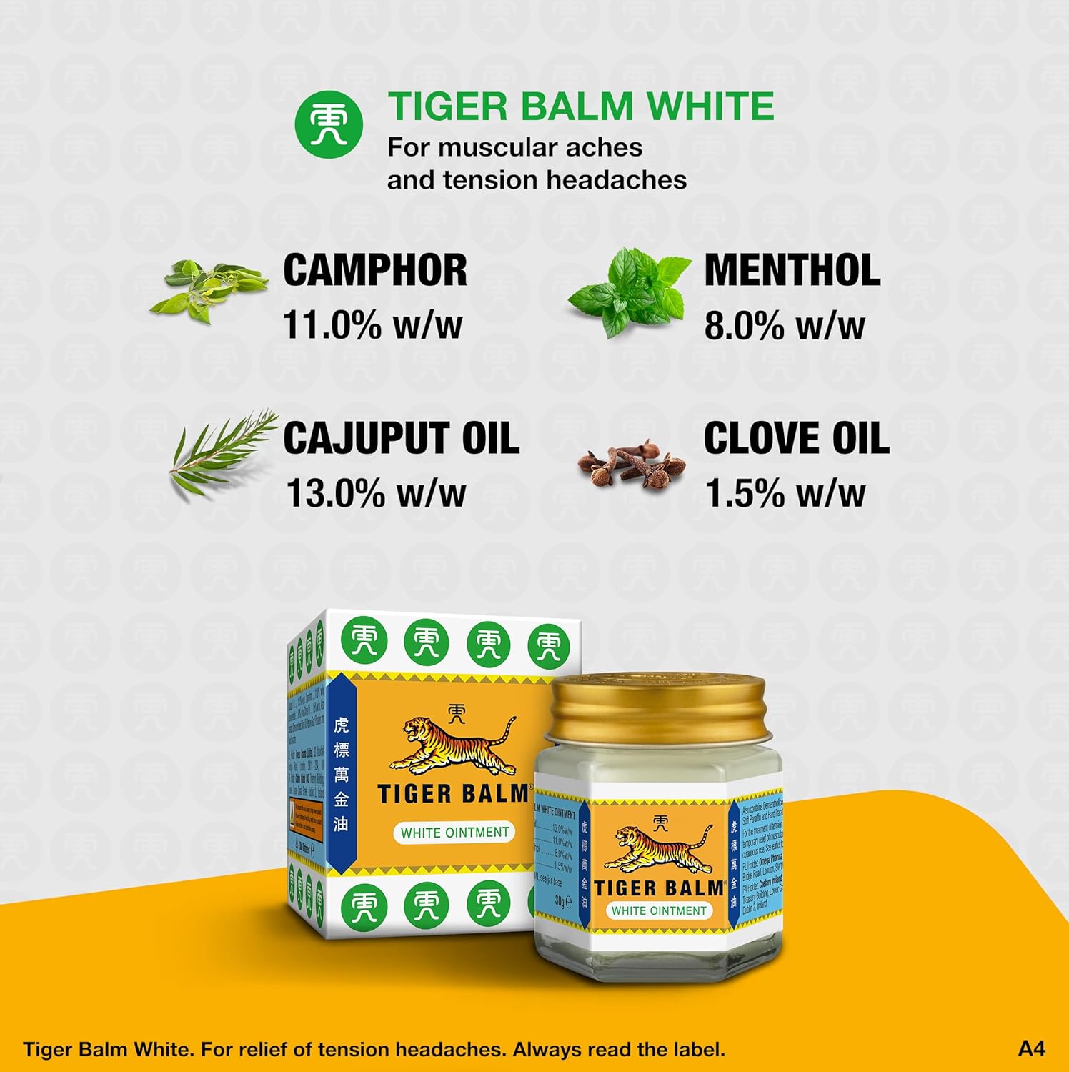 Tiger Balm White Ointment 30 G - For The Treatment Of Tension Headaches And Temporary Relief Of Muscular Aches And Pains