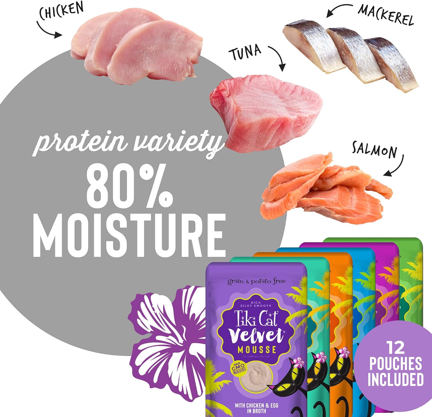 Tiki Cat Velvet Mousse, Protein Blend In Broth Variety Pack, Complete Nutrition For Balanced Diet, Wet Cat Food For All