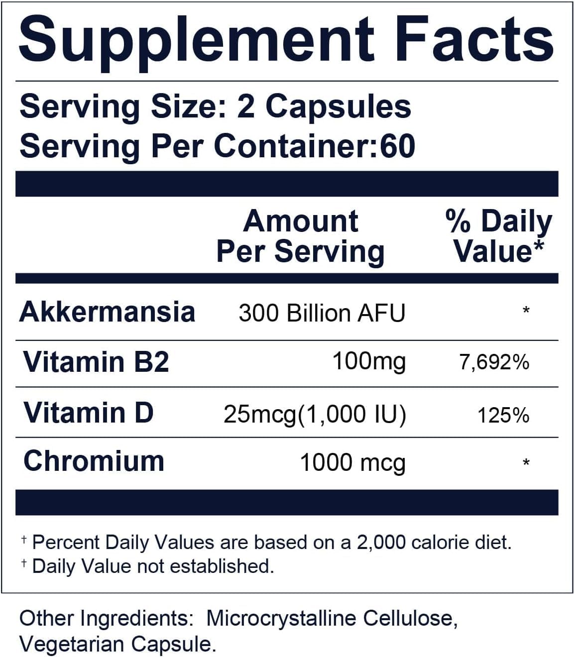 Probiotic Powerhouse: This supplement contains 300 billion AFU of Akkermansia Muciniphila, a probiotic strain that supports gut health and immune function