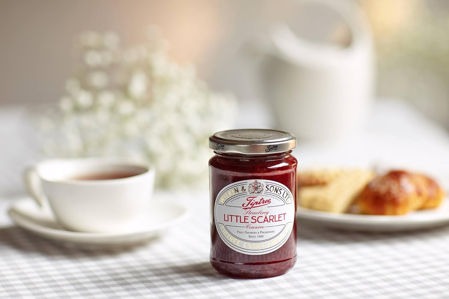 About this item Easy to spread, enjoy this preserve on toast, biscuits, muffins, pastries or even as a cake filling. Pairs well with Goat, Cream Cheese, or Brie. Ingredients: Sugar, Little Scarlet Strawberries, Gelling Agent: Citrus Pectin; Acidity Regulator: Citric Acid. Gluten free, made in a nut free factory, suitable for vegetarians and vegans. 12 ounce jar. The Wilkin family has been farming in Tiptree, Essex, since 1757, and making quality preserves since 1885. Majority of the fruit used in Tiptree jars are grown on their own farm, ensuring fruit is hand picked with care at the most optimal time. See more product details,Easy to spread, enjoy this preserve on toast, biscuits, muffins, pastries or even as a cake filling. Pairs well with Goat, Cream Cheese, or Brie,Ingredients: Sugar, Little Scarlet Strawberries, Gelling Agent: Citrus Pectin; Acidity Regulator: Citric Acid. Gluten free, made in a nut free factory, suitable for vegetarians and vegans,12 ounce jar,The Wilkin family has been farming in Tiptree, Essex, since 1757, and making quality preserves since 1885. Majority of the fruit used in Tiptree jars are grown on their own farm, ensuring fruit is hand picked with care at the most optimal time