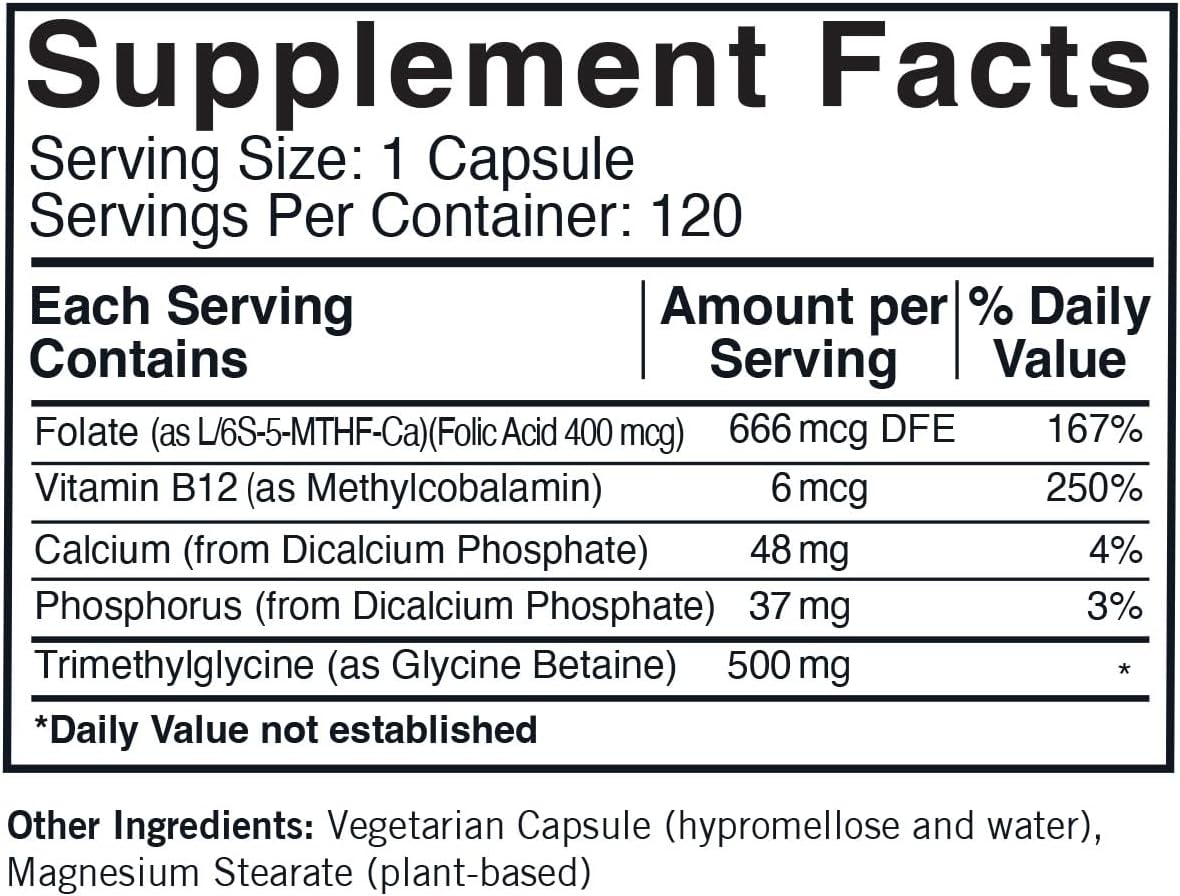 Tmg (Trimethylglycine) 500 Mg W/Folinic Acid & B12 Capsules - Hypo 120 Capsules
