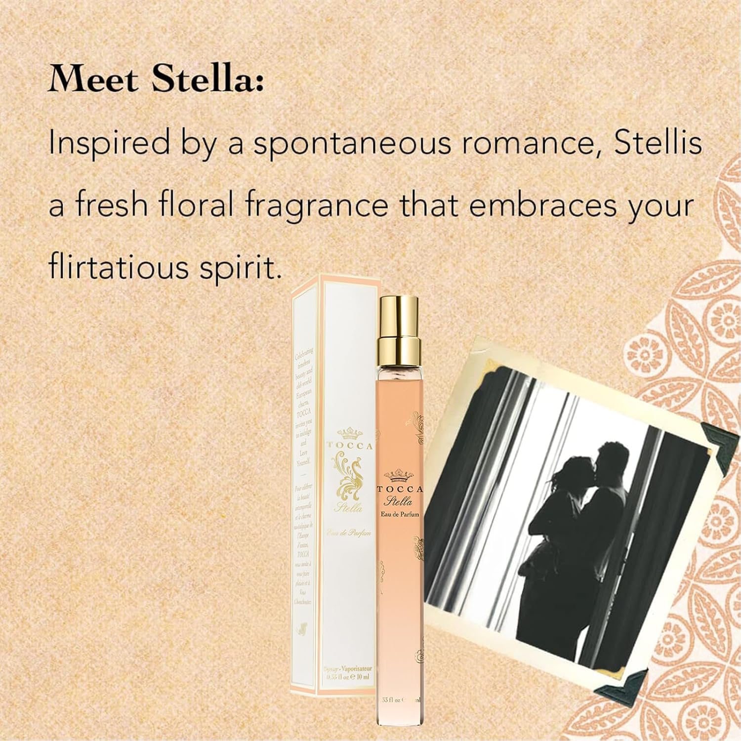 About this item ABOUT STELLA: Stella is a fresh floral fragrance that embraces your flirtatious spirit. It is a playful indulgence for your inner coquette. FRESH FLORAL SCENT: This women's fragrance offers key notes of blood orange, freesia and spicy lily. FRAGRANCE SPRAY: Flirty, sensual, spontaneous; Layer this beautiful fragrance with our dry body oil and hand cream TIMELESS: Encased in a dramatic 1920s inspired cut-glass bottle, the beautiful presentation makes this the perfect gift for someone special, even yourself! TOCCA: Celebrating timeless beauty and old-world European charm, TOCCA invites you to indulge and Love Yourself.  See more product details,ABOUT STELLA: Stella is a fresh floral fragrance that embraces your flirtatious spirit. It is a playful indulgence for your inner coquette,FRESH FLORAL SCENT: This women's fragrance offers key notes of blood orange, freesia and spicy lily,FRAGRANCE SPRAY: Flirty, sensual, spontaneous; Layer this beautiful fragrance with our dry body oil and hand cream,TIMELESS: Encased in a dramatic 1920s inspired cut-glass bottle, the beautiful presentation makes this the perfect gift for someone special, even yourself!,TOCCA: Celebrating timeless beauty and old-world European charm, TOCCA invites you to indulge and Love Yourself