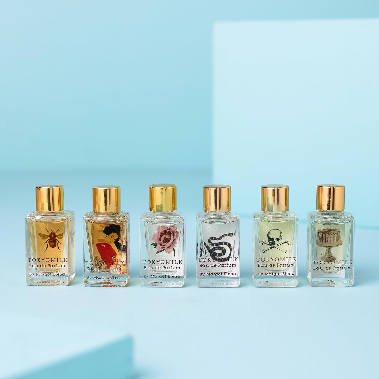 About this item PERFUME SAMPLER SET FOR WOMEN: Discover your signature scent with the TokyoMilk Eau de Parfum Discovery Set. Featuring six best-selling mini perfumes for women, this gift set explores fan-favorite sophisticated and mysterious fragrances. Are you curious ALLURING GLASS PACKAGING: Each mini dabber features an alluring glass bottle decorated with an image to match the brilliantly paired fragrance notes in each scent. EASY TO USE DABBERS : Dab the eau de parfum for women on your pulse points including neck, décolletage, and wrists as desired. COMPACT BOTTLE SIZE: These women’s fragrance bottles come with six 0.23 oz. Best-selling travel size perfumes: Honey and The Moon, French Kiss, Gin and Rosewater, Kabuki, Dead Sexy, and Let Them Eat Cake. MAKING BEAUTY MORE BEAUTIFUL: Margot Elena has spent over 20 years lovingly developing products and brands for a delightful, everyday escape. From intricate packaging to luxurious formulas and exquisite fragrances, each element is carefully crafted. See more product details,PERFUME SAMPLER SET FOR WOMEN: Discover your signature scent with the TokyoMilk Eau de Parfum Discovery Set. Featuring six best-selling mini perfumes for women, this gift set explores fan-favorite sophisticated and mysterious fragrances. Are you curious,ALLURING GLASS PACKAGING: Each mini dabber features an alluring glass bottle decorated with an image to match the brilliantly paired fragrance notes in each scent,EASY TO USE DABBERS : Dab the eau de parfum for women on your pulse points including neck, décolletage, and wrists as desired,COMPACT BOTTLE SIZE: These women’s fragrance bottles come with six 0.23 oz. Best-selling travel size perfumes: Honey and The Moon, French Kiss, Gin and Rosewater, Kabuki, Dead Sexy, and Let Them Eat Cake,MAKING BEAUTY MORE BEAUTIFUL: Margot Elena has spent over 20 years lovingly developing products and brands for a delightful, everyday escape. From intricate packaging to luxurious formulas and exquisite fragrances, each element is carefully crafted
