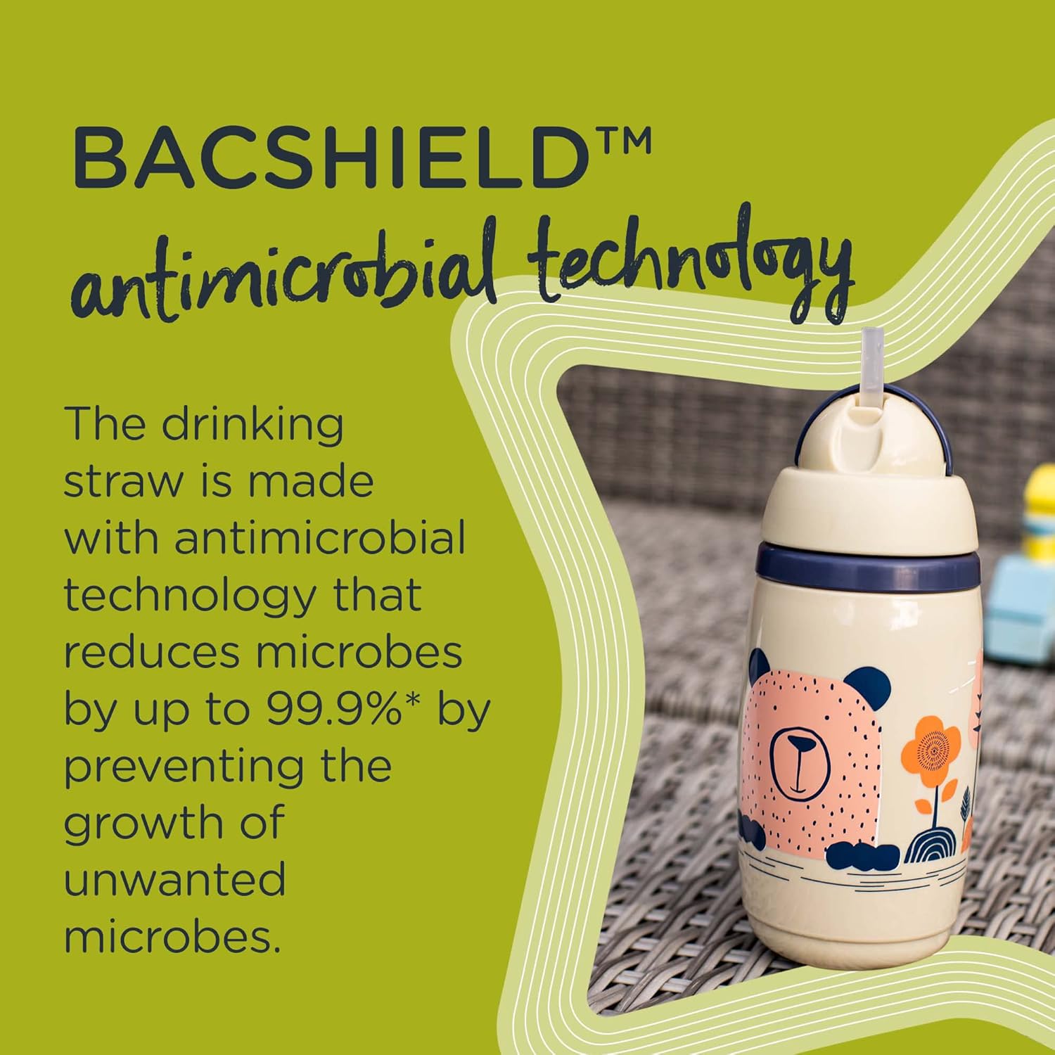About this item Leak-proof: Anti-leak technology means your toddler's drink will never spill (even when they turn their cup upside down or shake it) Soft straw: The straw is made from soft silicone that's gentle on little mouths but still durable Double wall insulated: This sporty water bottle helps to keep their drinks cool while they play, learn and explore Designed for toddlers aged 12m+: The bright colorful design is made with growing toddlers in mind, and helps to keep them hydrated as they play, learn and explore Baby-safe and easy to clean: All pieces are dishwasher safe and BPA free See more product details,Leak-proof: Anti-leak technology means your toddler's drink will never spill (even when they turn their cup upside down or shake it),Soft straw: The straw is made from soft silicone that's gentle on little mouths but still durable,Double wall insulated: This sporty water bottle helps to keep their drinks cool while they play, learn and explore,Designed for toddlers aged 12m+: The bright colorful design is made with growing toddlers in mind, and helps to keep them hydrated as they play, learn and explore,Baby-safe and easy to clean: All pieces are dishwasher safe and BPA free