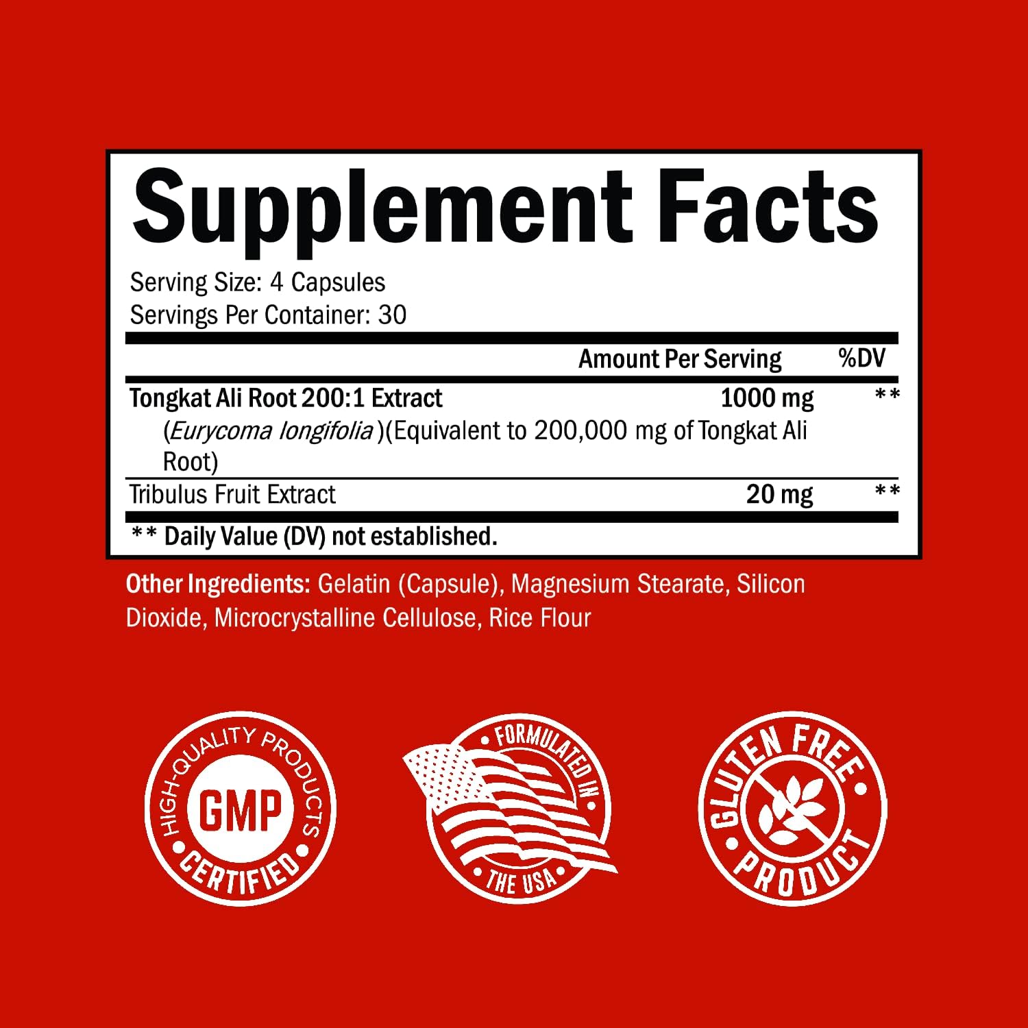 Tongkat Ali For Men 1020Mg (120 Capsules) 200 To 1 Tongkat Ali Extract (Eurycoma Longifolia) With Tribulus Terrestris For Natural Men'S Health Support (Gluten Free And Non Gmo) Full 30 Day Supply