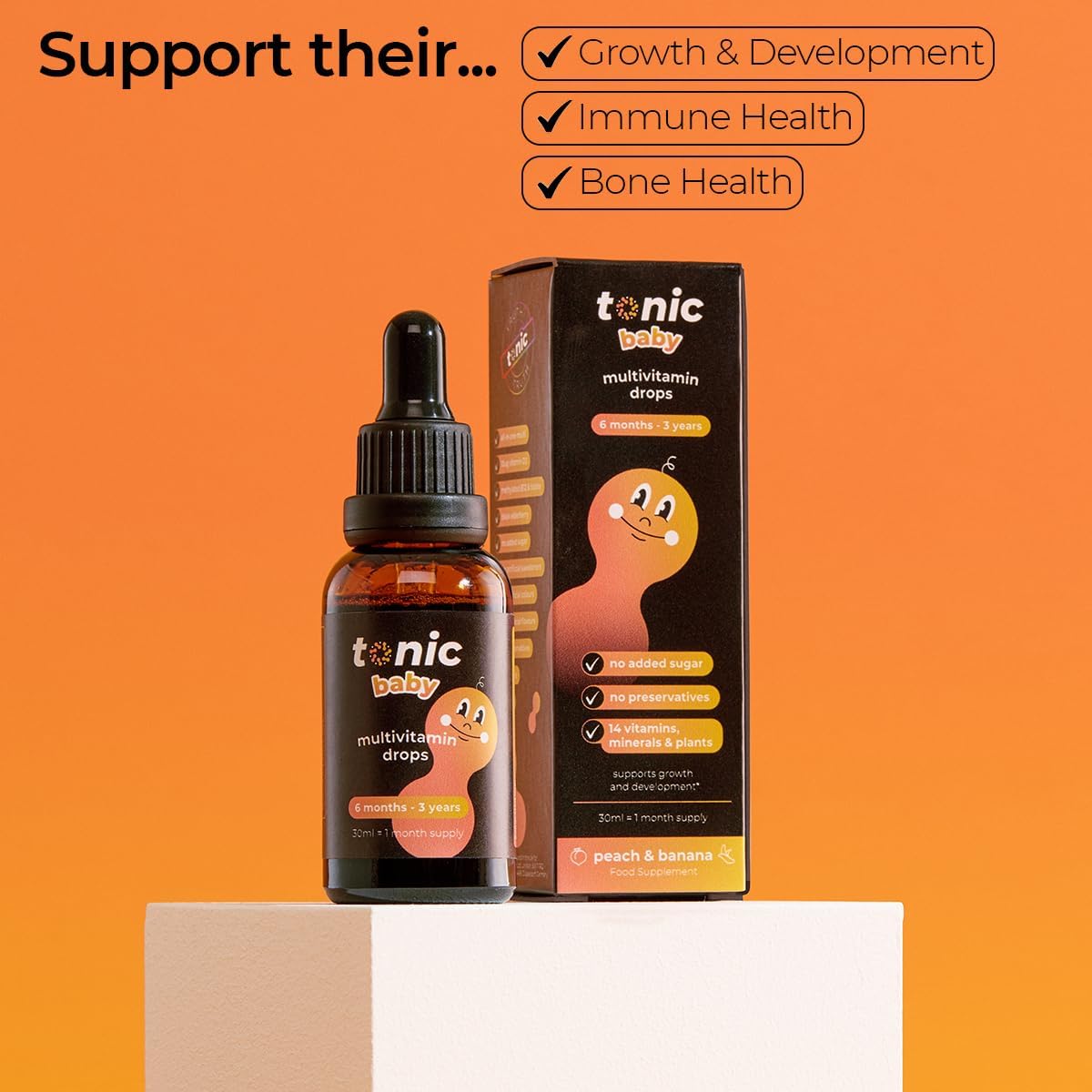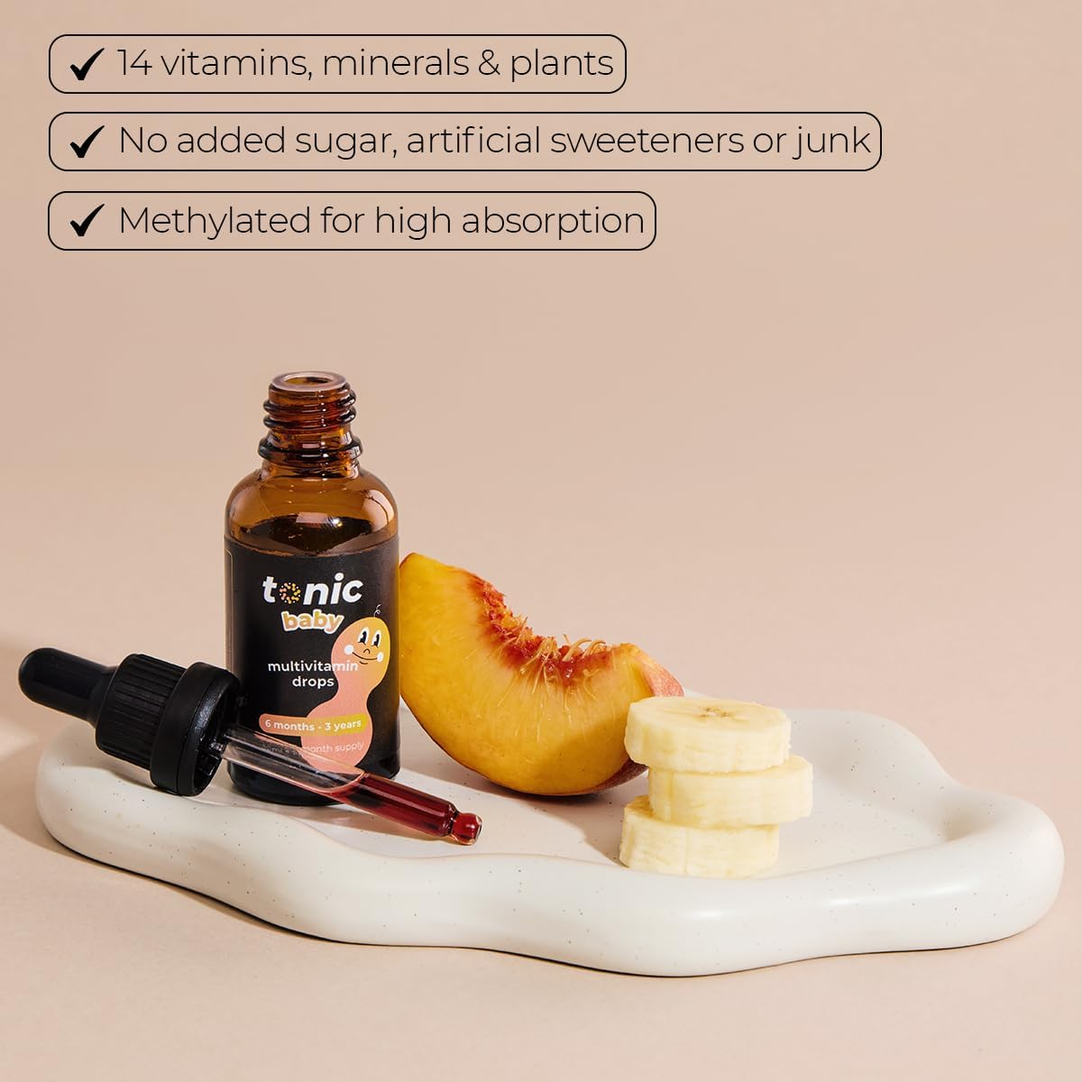 Tonic Health Baby Multivitamin Drops - 14 Baby Vitamins A, C, D, Minerals, And Plants - No Sugar/Preservatives - Kids Vitamins 6 To 36 Mos For Growth And Development, Peach And Banana 30Ml (Pack Of 1)