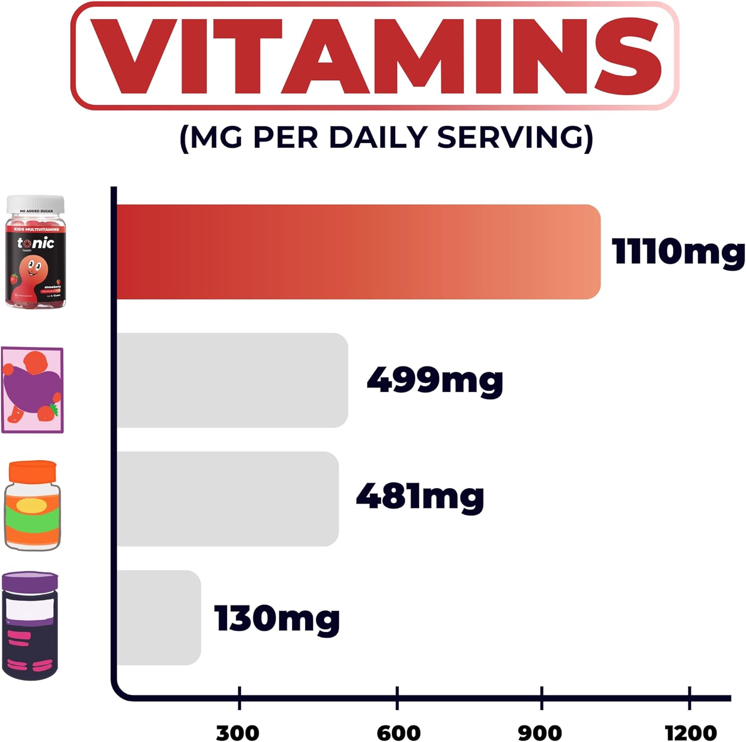 Tonic Health Kids Vitamins Gummies - 14 In 1 Kids Multivitamin With Vitamins A, C, D, E And Zinc, Strawberry Flavour, Month Supply (60 Count), Ages 3-12, No Added Sugar, No Sweeteners, Vegan