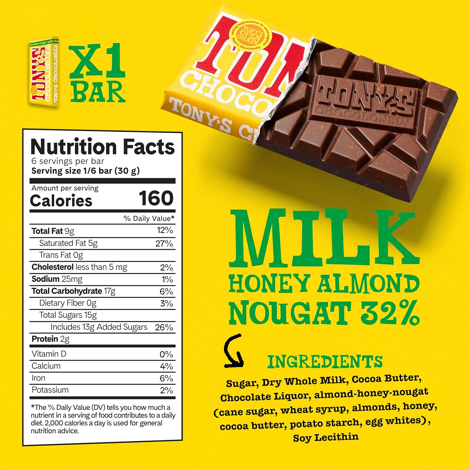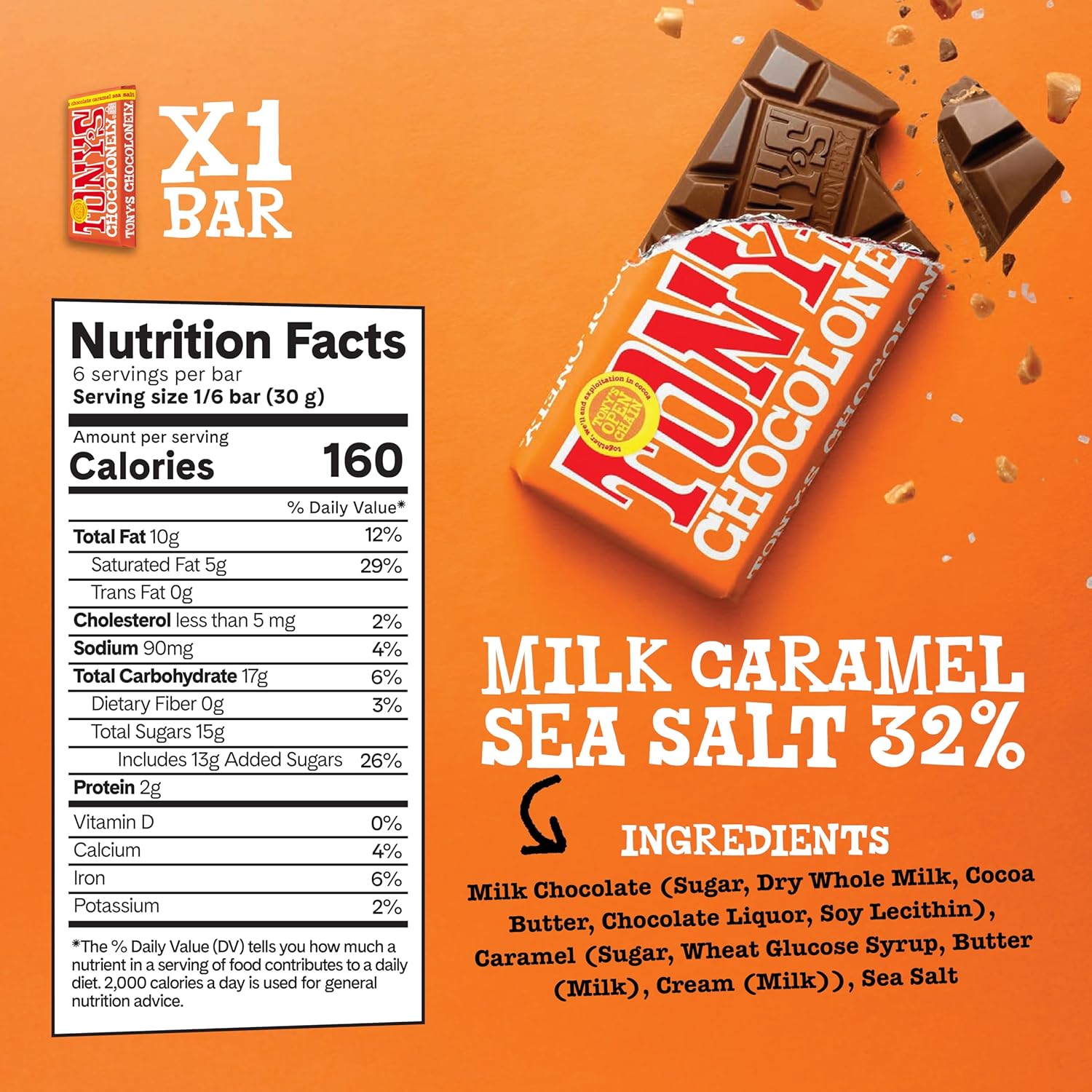 Indulge in Tony’s Super Duper Milk Chocolate Bundle, the ultimate collection for any chocolate lover. This deluxe bundle brings together 6 of Tony’s classic indulgent milk chocolate bars, offering a variety of rich flavors that will satisfy every craving. First, enjoy the classic smooth and creamy Milk Chocolate, which delivers the perfect balance of sweetness and cocoa. Next, dive into the delightful Milk Chocolate Caramel Sea Salt, which combines rich milk chocolate with the perfect touch of salty caramel for an irresistible flavor combination. For a chewy, nutty twist, try the Milk Chocolate Nougat, which blends smooth milk chocolate with chewy nougat for a truly satisfying bite. If you’re craving something fruity, the White Chocolate Raspberry offers a tangy raspberry burst paired with sweet white chocolate, creating a refreshing and delicious flavor. The Dark Chocolate Pretzel Toffee brings the perfect mix of crunchy pretzels, chewy toffee, and rich dark chocolate, making it a satisfying delight with a salty-sweet balance. Lastly, the Hazelnut Milk Chocolate combines creamy milk chocolate with crunchy hazelnuts for a nutty, indulgent experience. Whether you’re snacking solo, sharing with family and friends, or looking for the perfect gift for a chocolate lover, the Super Duper Milk Chocolate Bundle has everything you need. Each bar is made with Fairtrade traceable cocoa from farms in West Africa, supporting cocoa farmers to get paid a fair living income and that their working conditions are safe and ethical. By purchasing the Super Duper Milk Chocolate Bundle, you’re not only exposing yourself to a selection of delicious chocolate bars, but you’re also supporting a more sustainable, ethical, and fair chocolate industry. This bundle is a perfect gift for any occasion or a delightful snack to enjoy anytime. Whether you’re gifting it, indulging on your own, or sharing it with others, the Super Duper Milk Chocolate Bundle is sure to satisfy every chocolate craving,OUR MISSION TO END EXPLOITATION IN THE COCOA INDUSTRY: Tony’s Chocolonely exists to address the systemic issues in cocoa production. By sourcing directly from West Africa, we aim to end child labor, forced labor, and environmental harm. Every bar you buy supports our mission to create a cocoa industry free from exploitation,UNEQUALLY DIVIDED PIECES: Tony’s Chocolonely candy bars come with unequally divided pieces—on purpose! It’s our way of highlighting the inequality in the cocoa industry. While most bars are perfectly even, we think a little imperfection is a sweet reminder that fairness in cocoa production is still a work in progress. Enjoy a delicious snack with a purpose!,THE ULTIMATE MILK CHOCOLATE MIX: Tony’s Super Duper Milk Chocolate Bundle brings together 6 of the best flavors: classic Milk Chocolate, indulgent Milk Chocolate Caramel Sea Salt, chewy Milk Chocolate Nougat, tangy White Chocolate Raspberry, crunchy Milk Chocolate Pretzel Toffee, and nutty Hazelnut Milk Chocolate. Perfect for snacking, sharing, or gifting!,TONY’S 5 SOURCING PRINCIPLES: Tony’s Chocolonely upholds 5 key sourcing principles to support ethical and sustainable cocoa production: traceable beans for full transparency, paying a higher price to help farmers earn a living income, fostering long term partnerships with farmers, empowering strong farmers through better practices, and uplifting productivity and quality for sustainable growth,JOIN THE MOVEMENT, MAKE A DIFFERENCE WITH EVERY BITE: As a ChocoFan you can support chocolate made with ethically sourced cocoa. Choose consciously, support campaigns, and advocate for transparency in the cocoa industry. When you purchase Tony’s Chocolonely, you’re helping drive change to end exploitation in cocoa production