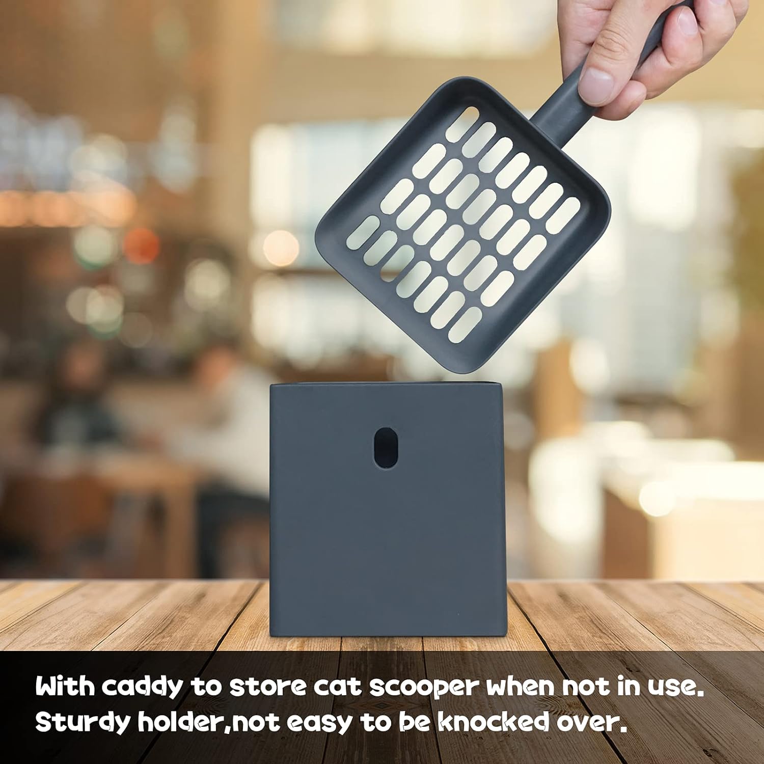 Tookincmo Cat Litter Scooper with Caddy, cat Scooper with Holder, with Container to Store cat Scooper, Durable ABS Material and Cute Design - 85° Matte Dark Grey
