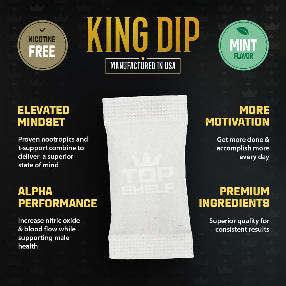 Top Shelf King Dip, Nootropic Energy Caffeine Pouches For Alpha Performance, Focus & Neuro Brain Supplement | Coffee Pouch Alternative (Mint)