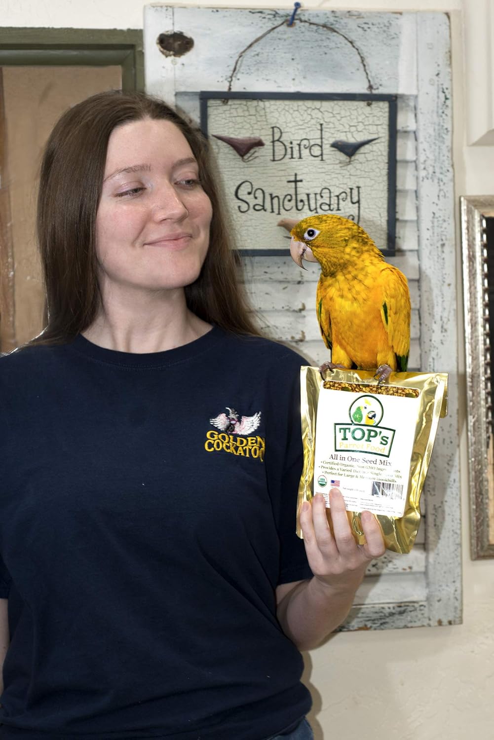 Serve your medium size parrots the best; either sprouted, soaked or dry. All in One seed is a healthy seed choice for your feathered companion parrots. TOPs All in One Seed Mix is made up of all-natural ingredients and is a human grade seed mix. Can be fed dry (right out of the bag), soaked for 10-12 hours or sprouted giving you the ability to feed a variety to your bird with only one mix. Popular with Cockatiels, Lovebirds, Parakeets, Parrotlets, Caiques, African Greys, Amazons, small Cockatoos, and Conures. Check out our Napoleon Seed Mix for smaller size or wild birds. Ships with Pack of two (1 lb) bags