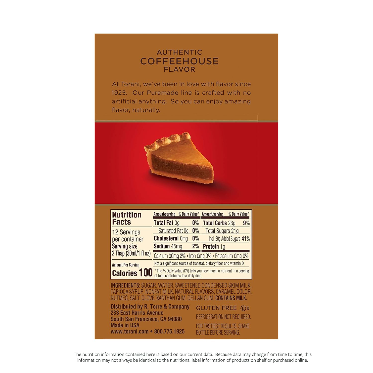 Extraordinary Flavor: Torani Puremade Pumpkin Pie Sauce Works Well In Desserts, Milkshakes, Mochas, Blended Coffees, And Hot Chocolates; Its New Formulation Includes No Artificial Preservatives And Is Non-Gmo