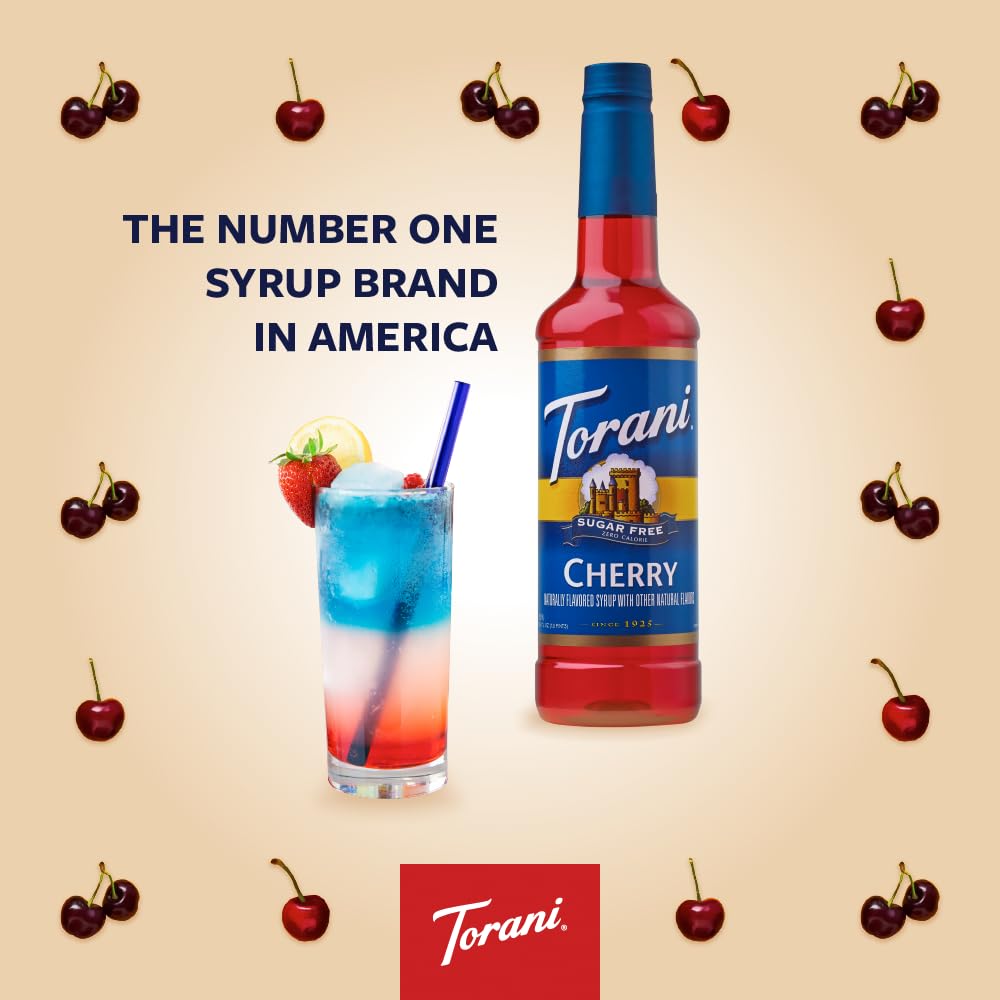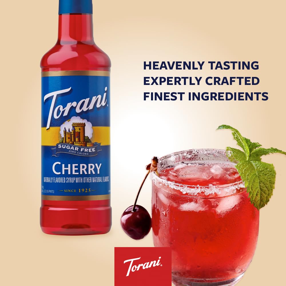 Torani Sugar-Free Syrup, Cherry, 25.4 Fl Oz Bottle (Pack Of 4)