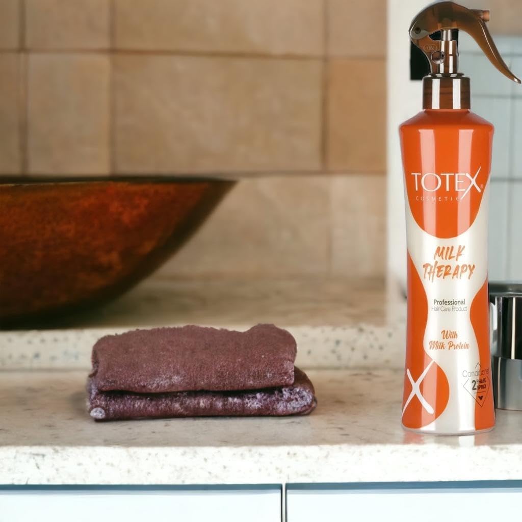 About The Product : Totex Milk Therapy - Totex Two Phase Hair Condtioner Milk Therapy Professional Hair Care Product For Women & Men All Hair, Deep Conditioning: The 2-phase formula combines the benefits of both oil and milk-based ingredients, providing deep nourishment and conditioning to your hair. This helps to repair and restore damaged hair, leaving it soft, smooth, and manageable